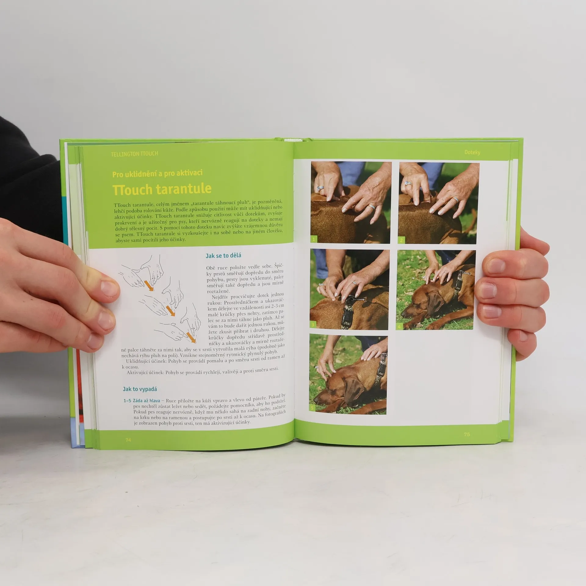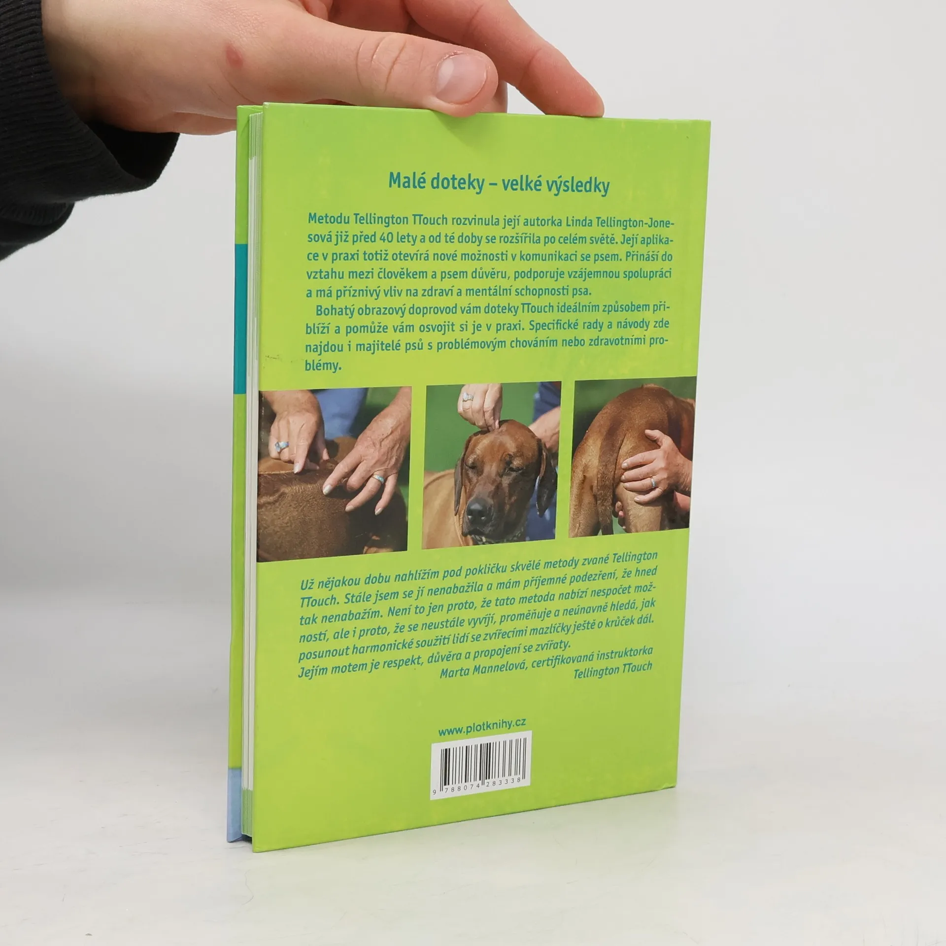 „Malé doteky – velké výsledky.“ Metodu Tellington TTouch rozvinula její autorka Linda Tellington-Jones již před 40 lety a od té doby se rozšířila po celém světě. Její aplikace v praxi totiž otevírá nové možnosti v komunikaci se psem. Tato metoda přináší do vztahu mezi člověkem a psem důvěru, podporuje vzájemnou spolupráci a má příznivý vliv na zdraví a mentální schopnosti psa. Bohatý obrazový doprovod vám doteky TTouch ideální způsobem přiblíží a pomůže vám osvojit si je v praxi. Rady a návody zde najdou i majitelé psů s problémovým chováním nebo zdravotními problémy.