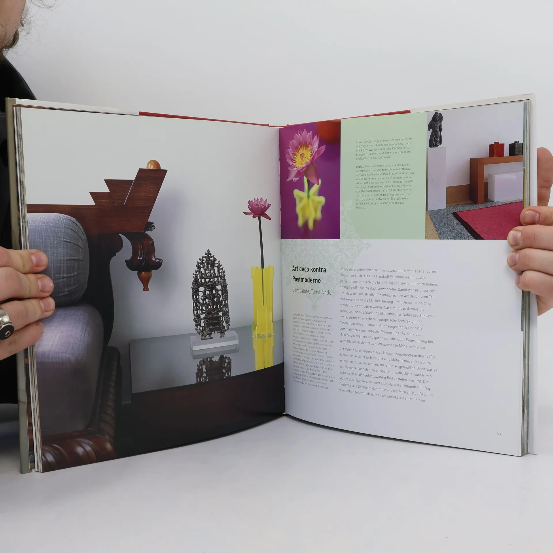 Der kometenhafte Aufstieg Indiens hin zu einem modernen, boomenden Land mit jugendlich-kräftiger Stimme ging rasant vonstatten. »New Indian chic« hat alle Lebensbereiche erobert: egal ob in Kochkunst, Mode, Musik oder Film, ob als Reiseziel oder Wellness-Programm – Indien ist hip und global. Und beweist dies in seinen Interieurs, die radikal modern oder voller Anspielungen an eine Jahrtausende alte Tradition sind. Der Puja-Raum, in dem Familien ihre Gebete sprechen, koexistiert friedlich mit Einrichtungsgegenständen von Gucci. In Städten wie Bombay, Madras oder Kalkutta lebt die urbane Kleinfamilie längst in individualisierten, atemberaubend stylishen Wohnwelten. Das neue Stichwort heißt »Vielfalt«, und Indien verkörpert sie wie kaum ein anderes Land. Dieses Buch erforscht die privaten Wohnsphären der neuen indischen Avantgarde. Lokal und international inspiriert, verbinden die Künstler und Designer westliche Kreativität mit der indischen Kultur, profitieren von Indiens kunsthandwerklichem Erbe und schaffen so neue, phantasievolle Produkte. Ein Wohnbuch, so aufregend und vielfältig wie eine exotische Gewürzmischung.