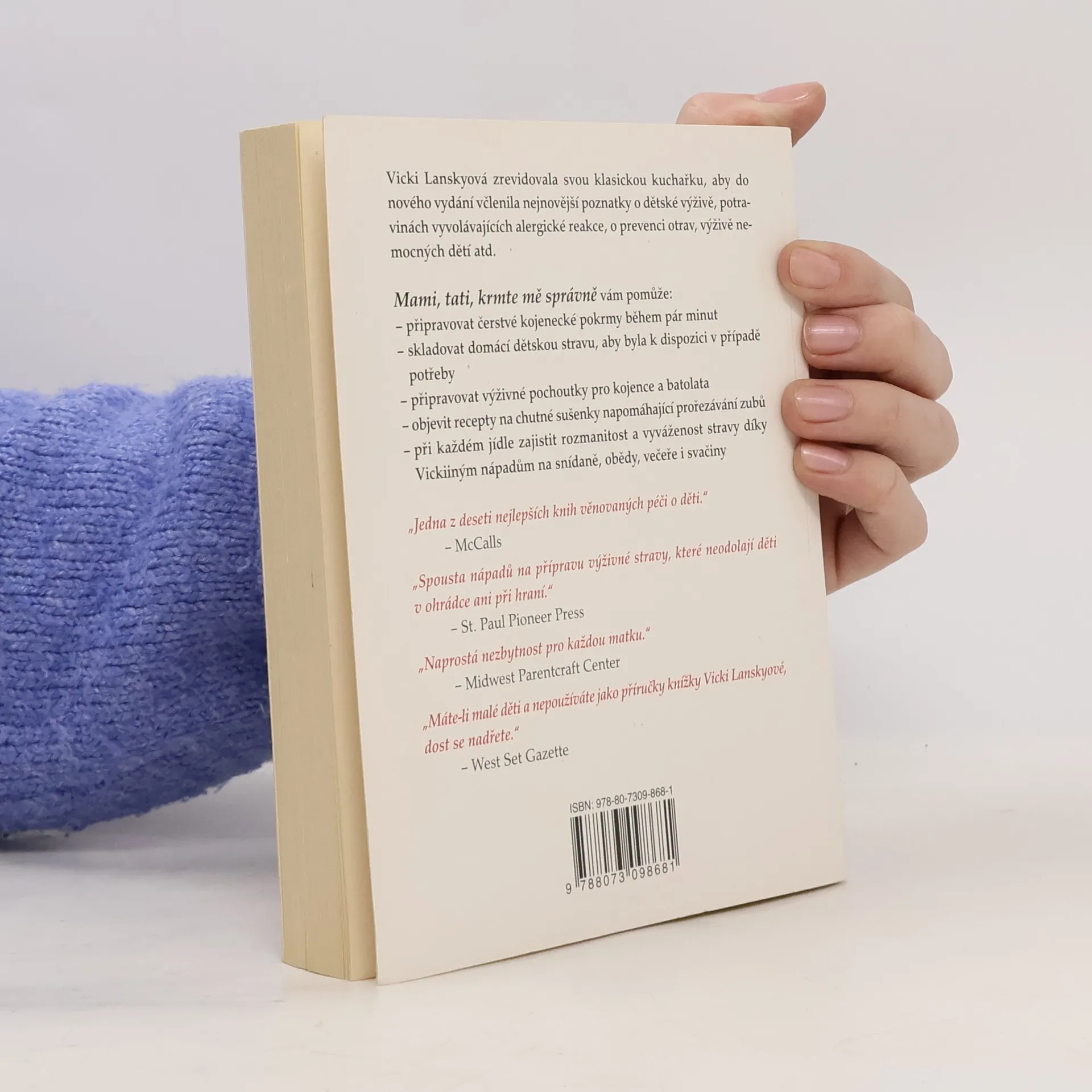 Vicki Lanskyová zrevidovala svou klasickou kuchařku, aby do nového vydání včlenila nejnovější poznatky o dětské výživě, potravinách vyvolávajících alergické reakce, o prevenci otrav, výživě nemocných dětí atd.
