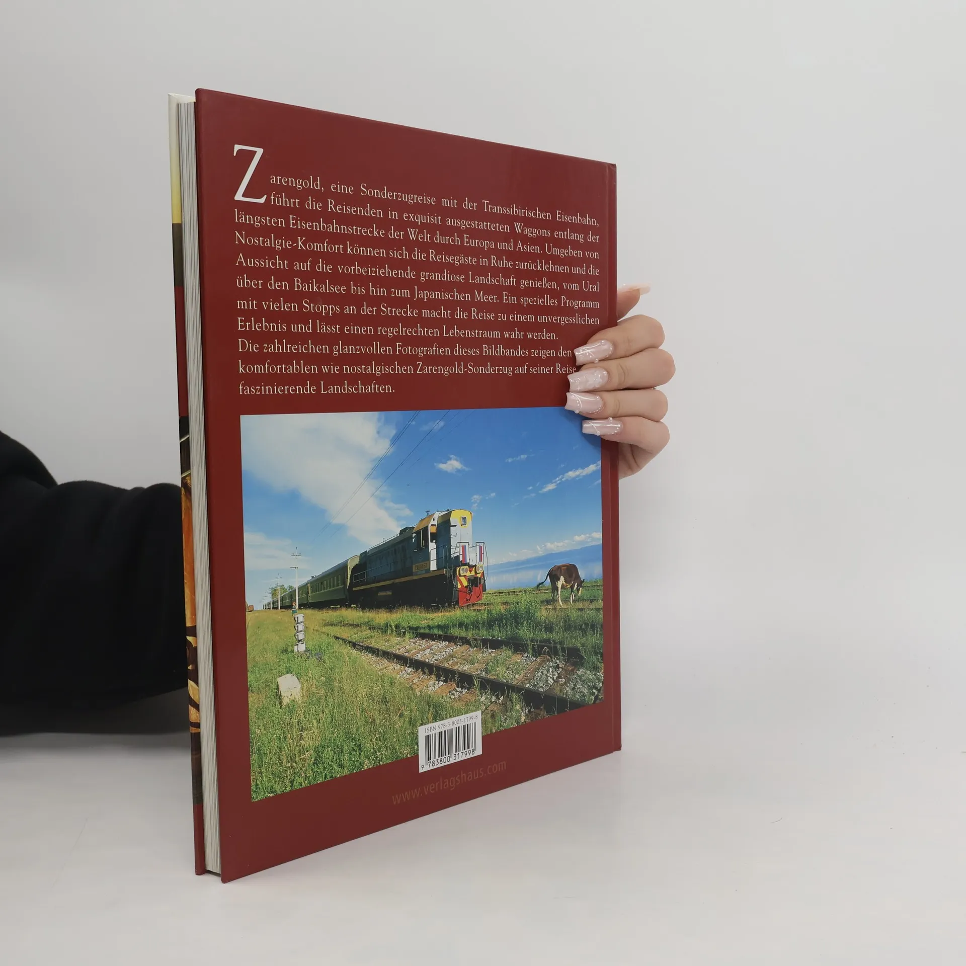 Eine Reise mit der Transsibirischen Eisenbahn führt die Reisenden im Sonderzug "Zarengold" entlang der längsten Eisenbahnstrecke der Welt durch Europa und Asien. Umgeben von Nostalgie-Komfort können sich die Reisegäste in Ruhe zurücklehnen und die Aussicht auf die vorbeiziehende grandiose Landschaft genießen, vom Ural über den Baikalsee bis hin zum Japanischen Meer. Ein spezielles Programm mit vielen Stopps an der Strecke macht die Reise zu einem unvergesslichen Erlebnis und lässt einen Lebenstraum wahr werden. Die zahlreichen glanzvollen Fotos dieses Bildbandes zeigen den ebenso komfortablen wie nostalgischen "Zarengold"-Sonderzug auf seiner Reise durch faszinierende Landschaften.