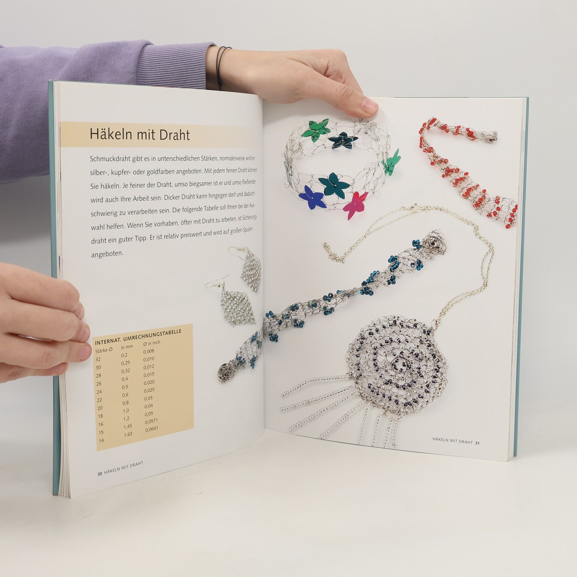 Häkeln ist wieder im Trend, und Häkelschmuck ganz besonders. Die meisten der hier vorgestellten Schmuckstücke sind schnell und leicht herzustellen und die große Bandbreite an unterschiedlichen Stilen lässt keine Wünsche offen. Da man beim Häkeln von einer Kette aus Luftmaschen ausgeht, eignet sich diese Handarbeit hervorragend für die Schmuckherstellung, ganz besonders für Ketten und Armbänder. Für die exklusiveren Modelle wird anstelle von Garn Schmuckdraht verwendet. Und Anhänger, Broschen oder Haarspangen lassen sich mit gehäkelten Blumen aus Lurexgarnen, bunten Perlen und dekorativen Bändern zusätzlich verzieren. 'Schmuck gehäkelt' ist ein Einsteigerbuch, das die Techniken des Häkelns und der Schmuckherstellung vermittelt, dazu gibt es praktische Informationen zu allen benötigten Materialien und eine Menge hilfreicher Tipps. Alle Modelle sind entsprechend ihres Schwierigkeitsgrades eingestuft und mit lückenlos nachvollziehbaren Anleitungen versehen. Die meisten Modelle sind von Anfänger/innen problemlos zu bewältigen, aber es gibt auch die etwas raffinierteren Stücke für die schon Fortgeschrittenen.