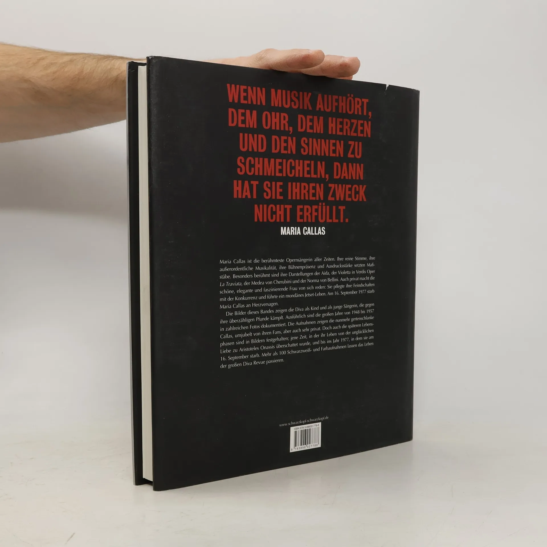 Am 2. Dezember 1923 wurde Maria Callas als Tochter griechischer Einwanderer in Brooklyn geboren. Mit 14 Jahren zog sie mit ihrer Mutter nach Athen, um Gesang am dortigen Konservatorium zu studieren. 1949 nahm sie die italienische Staatsbürgerschaft an, als sie Giovanni Battista Meneghini heiratete. Ihre Karriere begann in den USA und Italien, wo sie besonders an der Mailänder Scala große Erfolge feierte. Callas glänzte in zahlreichen Rollen, darunter Aida, Violetta in Verdis La Traviata, Medea von Cherubini und Norma von Bellini. Ihre reine Stimme, Musikalität und Bühnenpräsenz machten sie zur bedeutendsten Opernsängerin des 20. Jahrhunderts. Privat sorgte sie ebenfalls für Aufsehen, insbesondere durch ihre tragische Liebesaffäre mit Aristoteles Onassis, die über Jahre und seine zwei Ehen hinweg andauerte. Ein prachtvoller Bildband mit über 200 Schwarzweiß- und Farbaufnahmen lässt ihr Leben Revue passieren. Die Bilder zeigen Callas als Kind in New York und Griechenland, als junge Sängerin, die gegen ihre Pfunde kämpft, und dokumentieren ihre großen Jahre von 1948 bis 1957. Auch die späteren Jahre, in denen ihre Stimme sich veränderte und ihre Liebe zu Onassis ihr Leben überschattete, sind festgehalten. Bis zu ihrem frühen Tod am 16. September 1977 blieb Callas eine elegante und faszinierende Frau. Anlässlich ihres 30. Todestages erscheint 2007 dieser einzigartige Bildband.