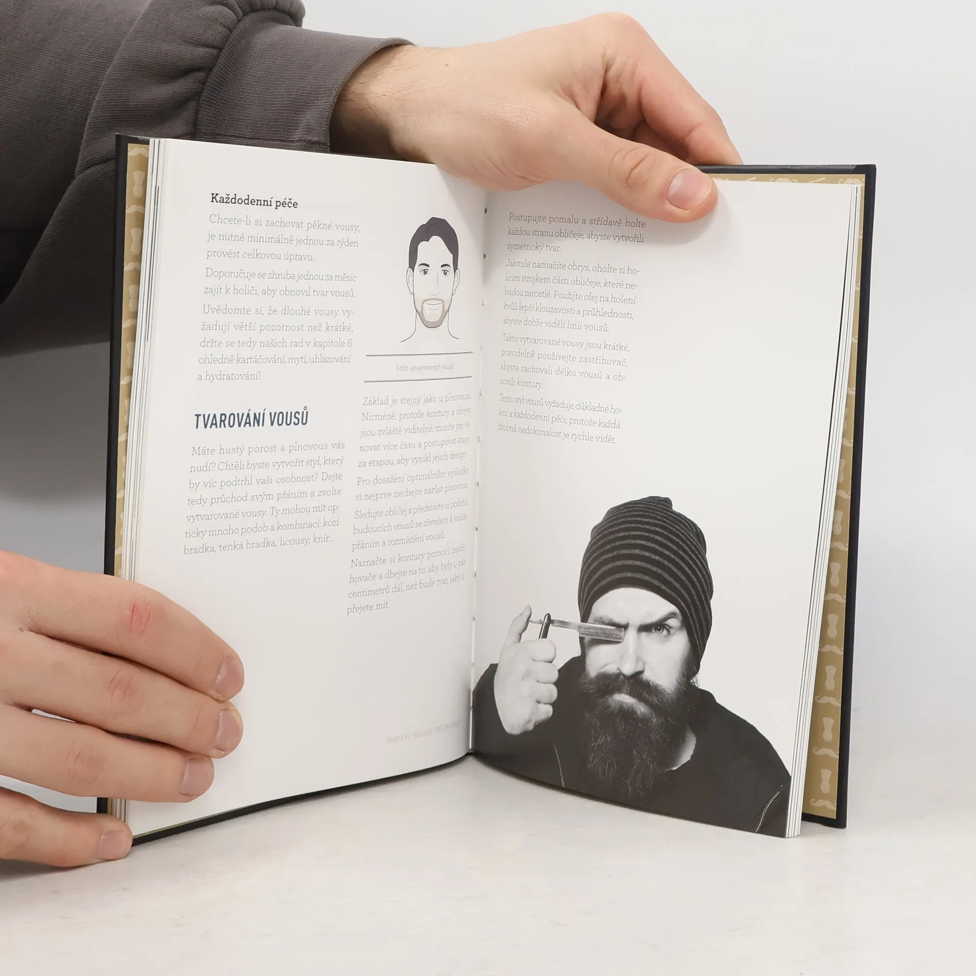 Ať už si vousy zvolíte z pohodlnosti, abyste vypadali starší, nebo z estetických důvodů, vždycky se v nich projeví mužská osobnost. V pracovním prostředí, kde byla dlouhou dobu normou hladce oholená tvář, provází návrat vousů jedna podmínka: aby byly čisté a dobře udržované. V tomto praktickém průvodci najdete rady, jak: -si vybrat vousy, aby odpovídaly vašemu stylu a vaší osobnosti, -stříhat vousy (krátké, střední, dlouhé, vytvarované…) včetně podrobného popisu, -pečovat o vousy a pleť pomocí nástrojů a pečujících přípravků, -si vybrat, stříhat a udržovat knír, -se holit tradičním způsobem, jak to provozují mistři holiči, -se naučit tipy a triky, abyste se vyhnuli každodenním problémům. Tento průvodce je nezbytným doplňkem každého vousatého gentlemana.