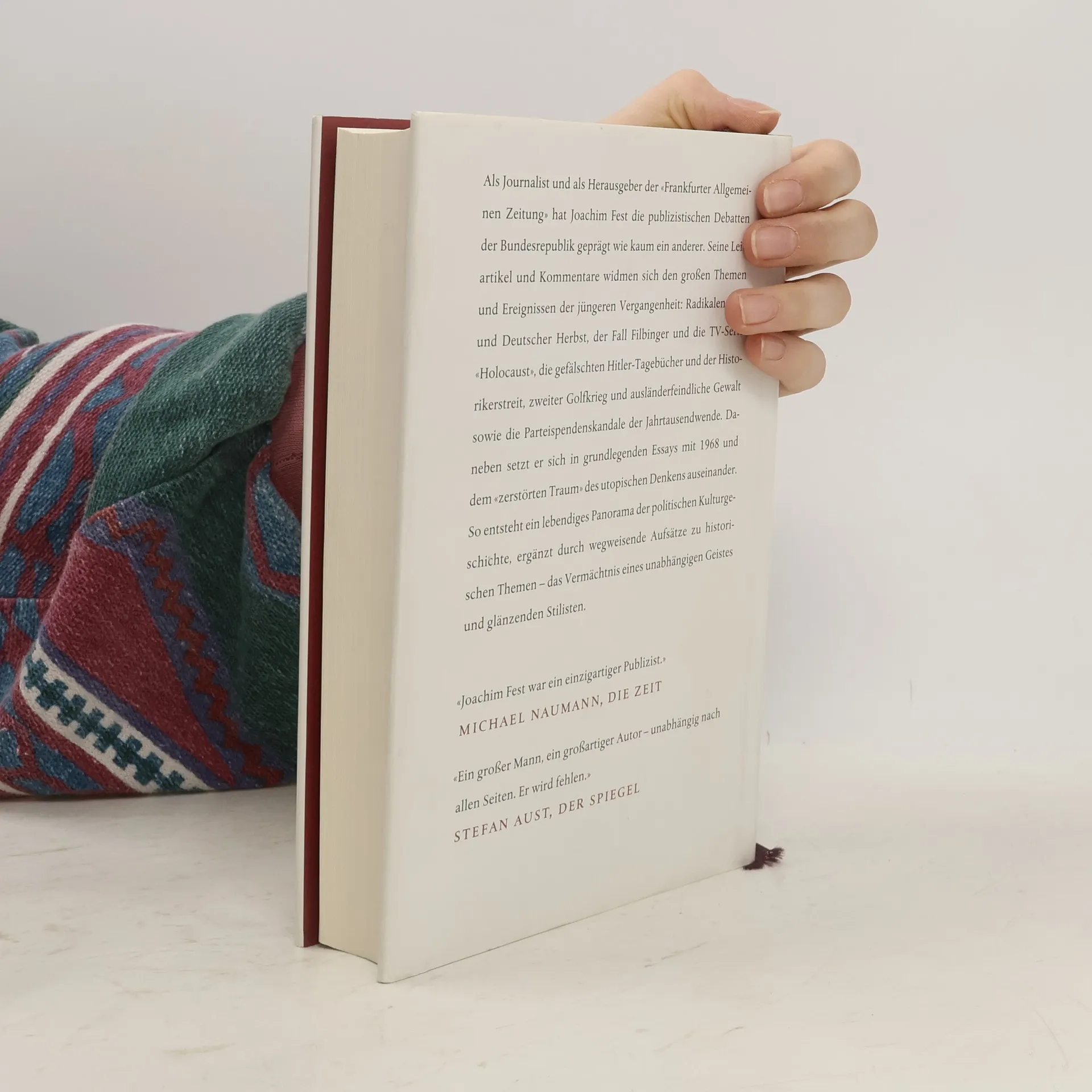 Als Journalist und als Herausgeber der «Frankfurter Allgemeinen Zeitung» hat Joachim Fest die publizistischen Debatten der Bundesrepublik geprägt wie kaum ein anderer. Seine Leitartikel und Kommentare widmen sich den großen Themen und Ereignissen der jüngeren Vergangenheit: Radikalenerlass und Deutscher Herbst, der Fall Filbinger und die TV-Serie «Holocaust», die gefälschten Hitler-Tagebücher und der Historikerstreit, zweiter Golfkrieg und ausländerfeindliche Gewalt sowie die Parteispendenskandale der Jahrtausendwende. Daneben setzt er sich in grundlegenden Essays mit 1968 und dem «zerstörten Traum» des utopischen Denkens auseinander. So entsteht ein lebendiges Panorama der politischen Kulturgeschichte, ergänzt durch wegweisende Aufsätze zu historischen Themen – das Vermächtnis eines unabhängigen Geistes und glänzenden Stilisten.