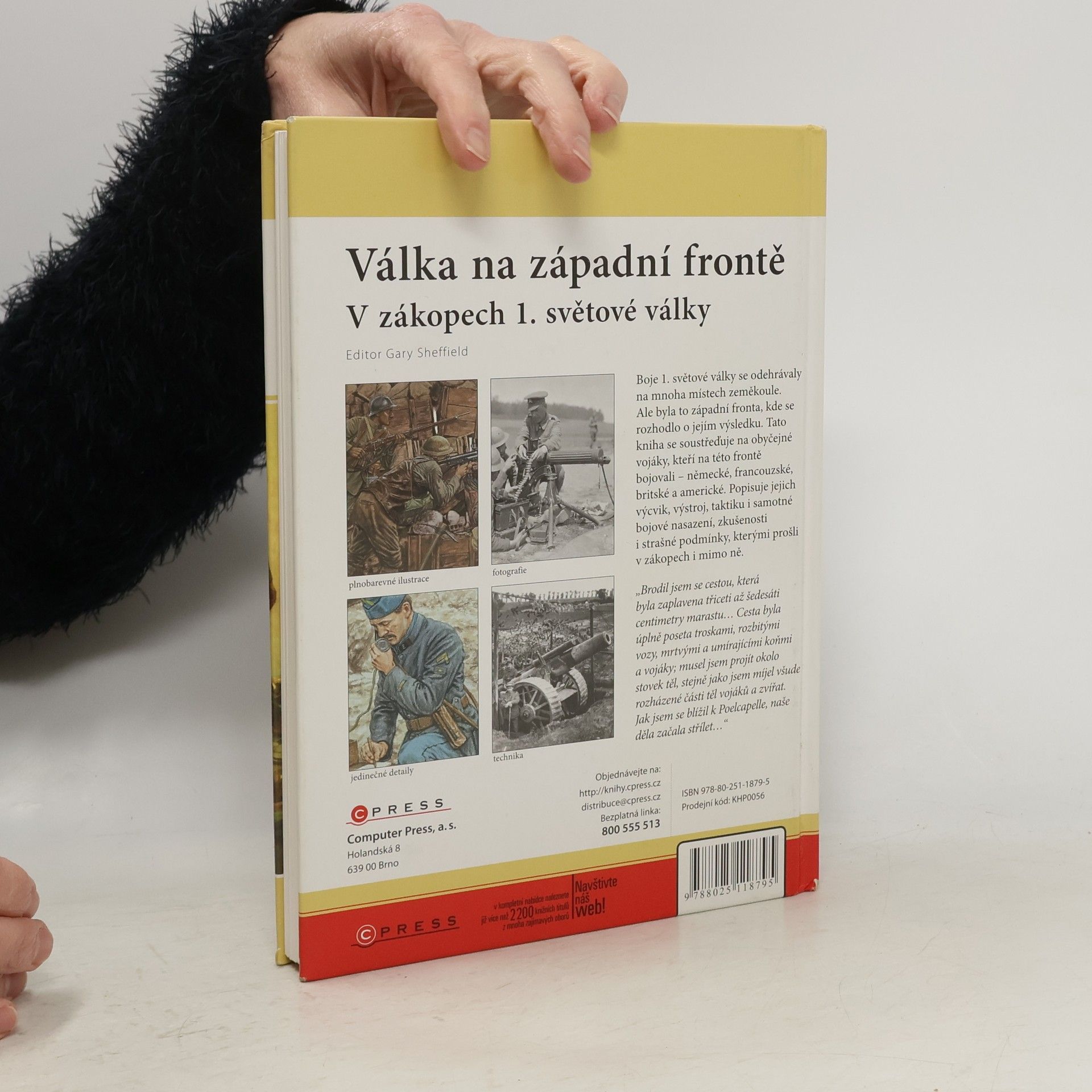 Boje 1. světové války se odehrávaly na mnoha místech zeměkoule. Ale byla to západní fronta, kde se rozhodlo o jejím výsledku. Tato kniha se soustřeďuje na obyčejné vojáky, kteří na této frontě bojovali – německé, francouzské, britské a americké. Popisuje jejich výcvik, výstroj, taktiku i samotné bojové nasazení, zkušenosti i strašné podmínky, kterými prošli v zákopech i mimo ně.
