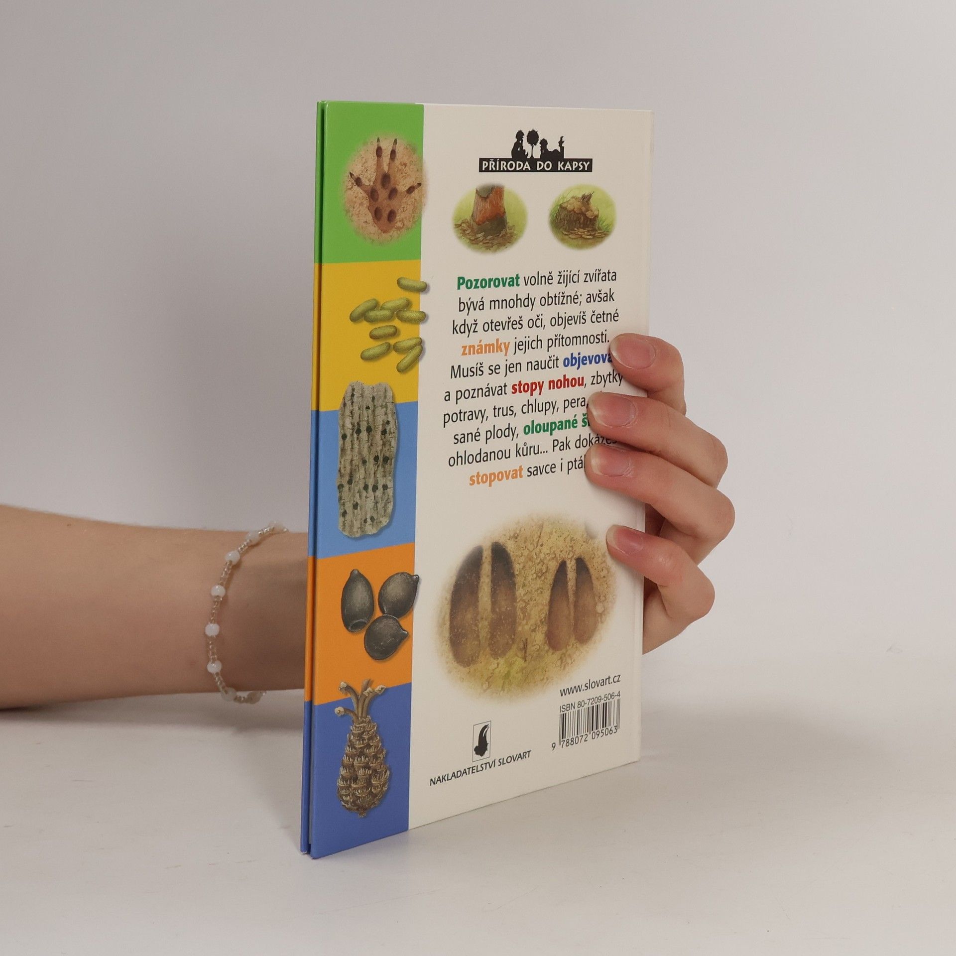 Pozorovat volně žijící zvířata bývá mnohdy obtížné, avšak když otevřeš oči, objevíš četné známky jejich přítomnosti. Musíš se jen naučit objevovat a poznávat stopy nohou, zbytky potravy, chlupy, pera, okousané plody…. Pak dokážeš stopovat savce i ptáky.