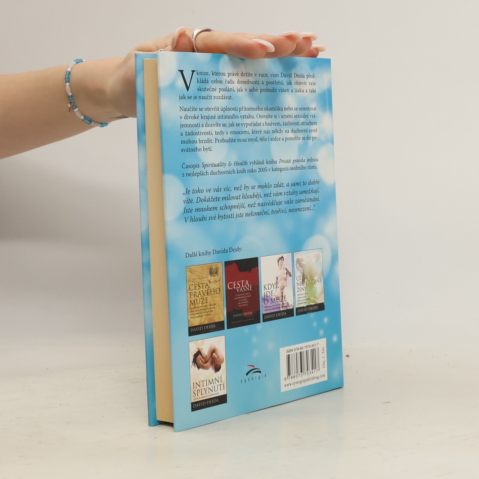 Duchovní průvodce po životě, smrti, lásce a milování. Ve své nové knize David Deida předkládá celou řadu dovedností a postřehů jak objevit vaše skutečné poslání, jak v sobě probudit vášeň a lásku a také jak se je naučit rozdávat. Ukáže vám třeba, jak se otevřít úplnosti přítomného okamžiku nebo jak se orientovat v divoké krajině intimního vztahu. Osvojíte si i umění sexuální vzájemnosti a dozvíte se, jak nakládat s hněvem, žárlivostí, strachem a žádostivostí, tedy s emocemi, které nás někdy na duchovní cestě mohou brzdit. Probuďte svou mysl, tělo i srdce a ponořte se do posvátného bytí. Časopis Spirituality & Health vyhlásil v roce 2006 knihu Prostá pravda jednou z nejlepších duchovních knih roku 2005 v kategorii osobního růstu. “Je toho ve vás víc, než by se mohlo zdát, a sami to dobře víte. Dokážete milovat hlouběji, než vám vztahy umožňují. Jste mnohem schopnější, než nasvědčuje vaše zaměstnání. V hloubi své bytosti jste nekoneční, tvořiví, neomezení...”