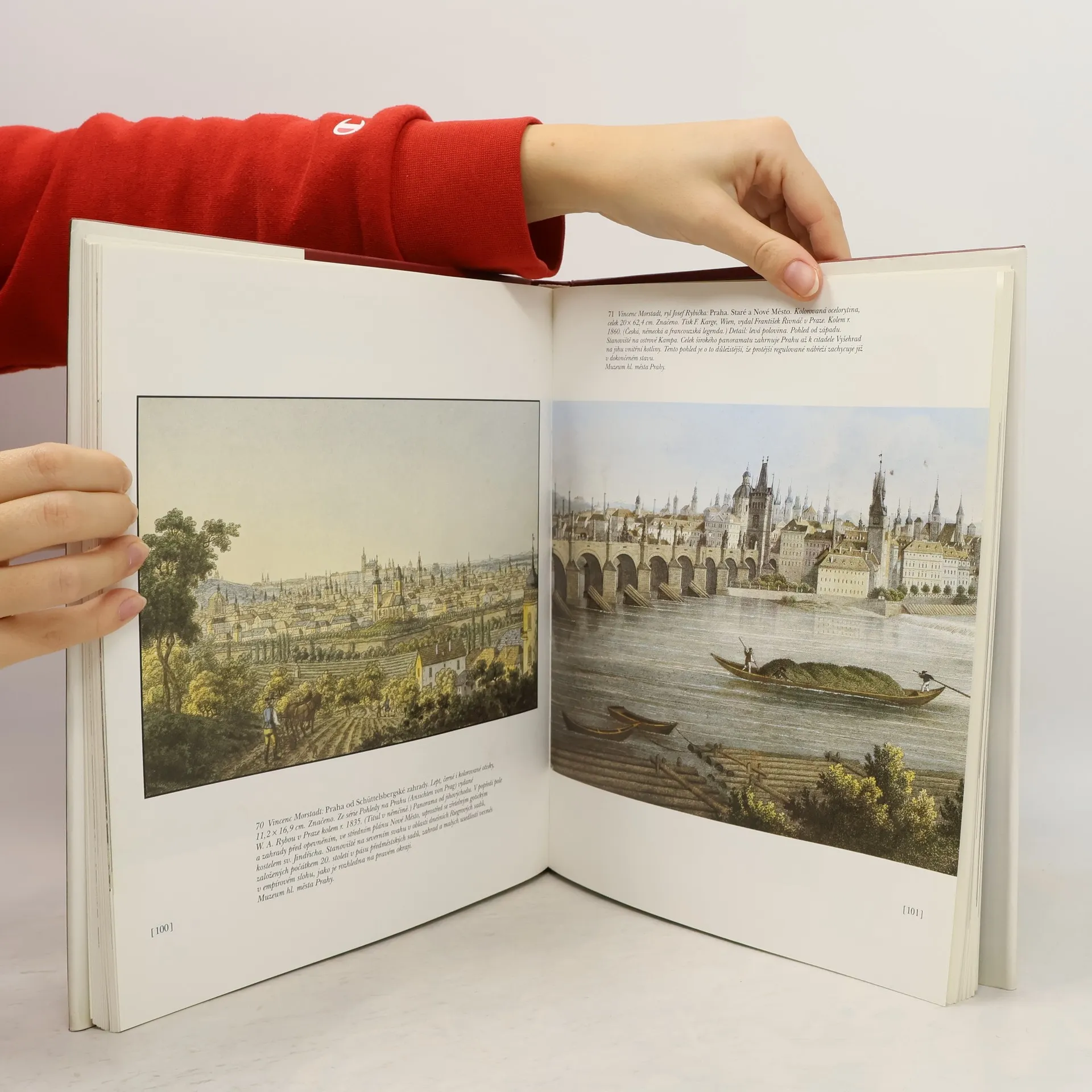 Biografie města v obrazech v průběhu pěti století dovedená až ke konci vývoje klasické veduty v Čechách a nástupu nového pohledu na město v díle Antonína Slavíčka na počátku 20. století. Veduta jako přesný topografický dokument dokládající proměny města i jako (od sklonku 16. století)pokus o vyjádření osobitého charakteru Prahy a poodhalení jejího genia loci. Praha jako námět umělců. Veduty renesanční, barokní, klasicistní i veduty 19. století (empírové, romantické, realistické). Co bylo v které době předmětem zobrazení, jak a za jakých podmínek vývoje umění vedutisté vnímali a zachycovali krásy městské krajiny. 116 reprodukcí, seznam doporučené literatury.