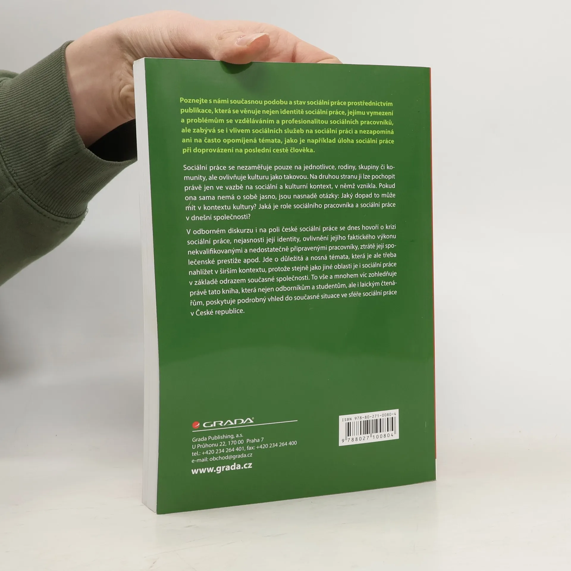 Sociální práce se nezaměřuje pouze na jednotlivce, rodiny, skupiny či komunity, ale ovlivňuje kulturu jako takovou. Na druhou stranu ji lze pochopit právě jen ve vazbě na sociální a kulturní kontext, v němž vznikla. Pokud ona sama nemá o sobě jasno, jsou nasnadě otázky: Jaký dopad to může mít v kontextu kultury? Jaká je role sociálního pracovníka a sociální práce v dnešní společnosti? V odborném diskurzu i na poli české sociální práce se dnes hovoří o krizi sociální práce, nejasnosti její identity, ovlivnění jejího faktického výkonu nekvalifikovanými a nedostatečně připravenými pracovníky, ztrátě její společenské prestiže apod. Jde o důležitá a nosná témata, která je ale třeba nahlížet v širším kontextu, protože stejně jako jiné oblasti je i sociální práce v základě odrazem současné společnosti. To vše a mnohem víc zohledňuje právě tato kniha, která nejen odborníkům a studentům, ale i laickým čtenářům, poskytuje podrobný vhled do současné situace ve sféře sociální práce v České republice.
