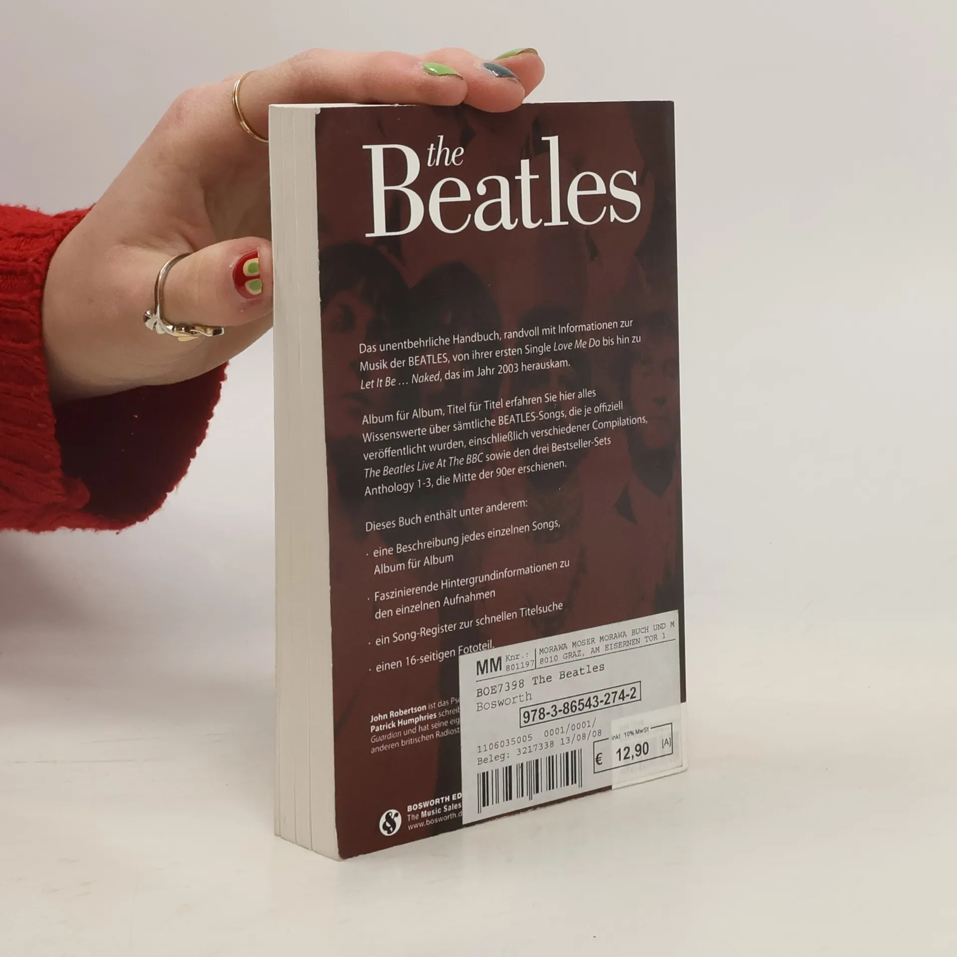 Album für Album gibt es wertvolle und detailierte Infos über sämtliche Beatles-Songs, die je offiziell veröffentlicht wurden, einschließlich verschiedener Kompilationen, 'The Beatles Live At The BBC' sowie der drei Bestseller-Sets 'Anthology 1- 3', die Mitte der 90er-Jahre erschienen. Zu allen Alben und Songs gibt das Buch faszinierende Hintergrundinformationen. Mit 16-seitigem Fototeil und einem Song-Register. John Robertson ist das Pseudonym eines bekannten britischen Rockkritikers. Patrick Humphries schreibt unter anderem für die Times, Mojo sowie den Guardian und hat seine eigenen Radiosendungen auf BBC und anderen britischen Radiostationen.