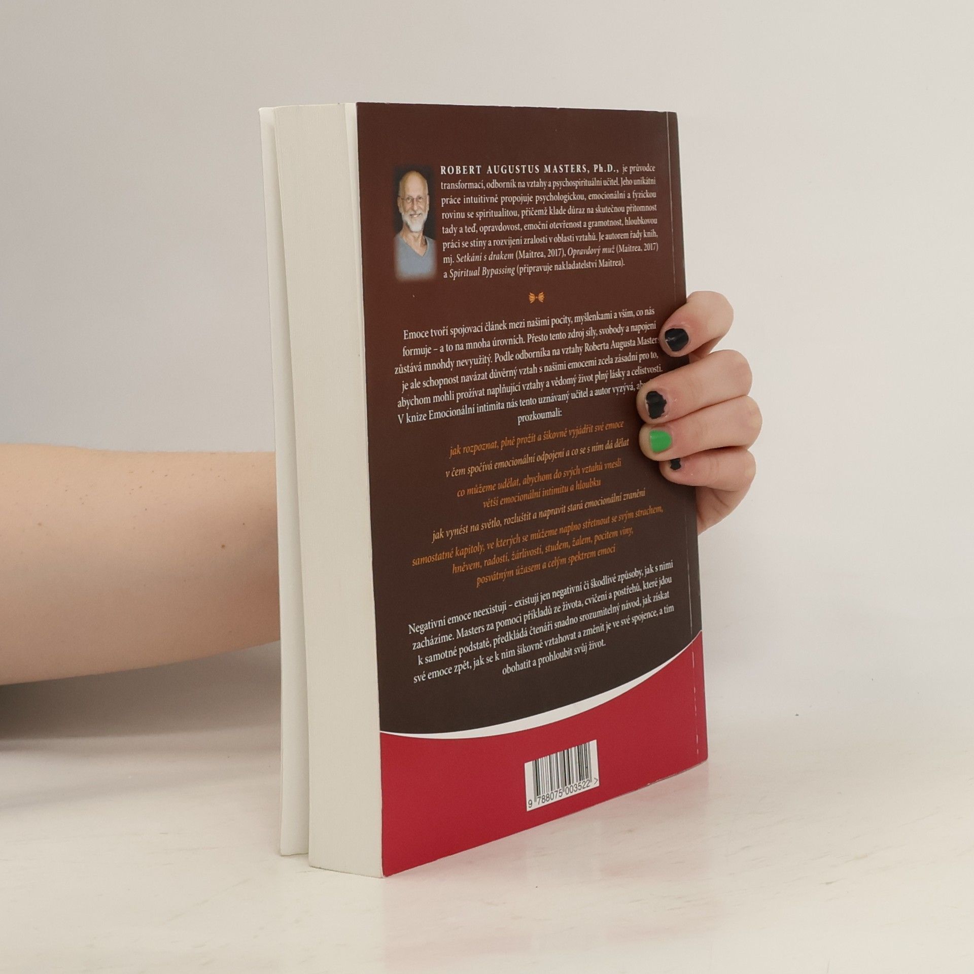 Emoce tvoří spojovací článek mezi našimi pocity, myšlenkami a vším, co nás formuje – a to na mnoha úrovních. Přesto tento zdroj síly, svobody a napojení zůstává mnohdy nevyužitý. Podle odborníka na vztahy Roberta Augusta Masterse je ale schopnost navázat důvěrný vztah s našimi emocemi zcela zásadní pro to, abychom mohli prožívat naplňující vztahy a vědomý život plný lásky a celistvosti. V knize Emocionální intimita nás tento uznávaný učitel a autor vyzývá, abychom prozkoumali: • jak rozpoznat, plně prožít a šikovně vyjádřit své emoce • v čem spočívá emocionální odpojení a co se s ním dá dělat • co můžeme udělat, abychom do svých vztahů vnesli větší emocionální intimitu a hloubku • jak vynést na světlo, rozluštit a napravit stará emocionální zranění • samostatné kapitoly, ve kterých se můžeme naplno střetnout se svým strachem, hněvem, radostí, žárlivostí, studem, žalem, pocitem viny, posvátným úžasem a celým spektrem emocí Negativní emoce neexistují – existují jen negativní či škodlivé způsoby, jak s nimi zacházíme. Masters za pomoci příkladů ze života, cvičení a postřehů, které jdou k samotné podstatě, předkládá čtenáři snadno srozumitelný návod, jak získat své emoce zpět, jak se k nim šikovně vztahovat a změnit je ve své spojence, a tím obohatit a prohloubit svůj život.