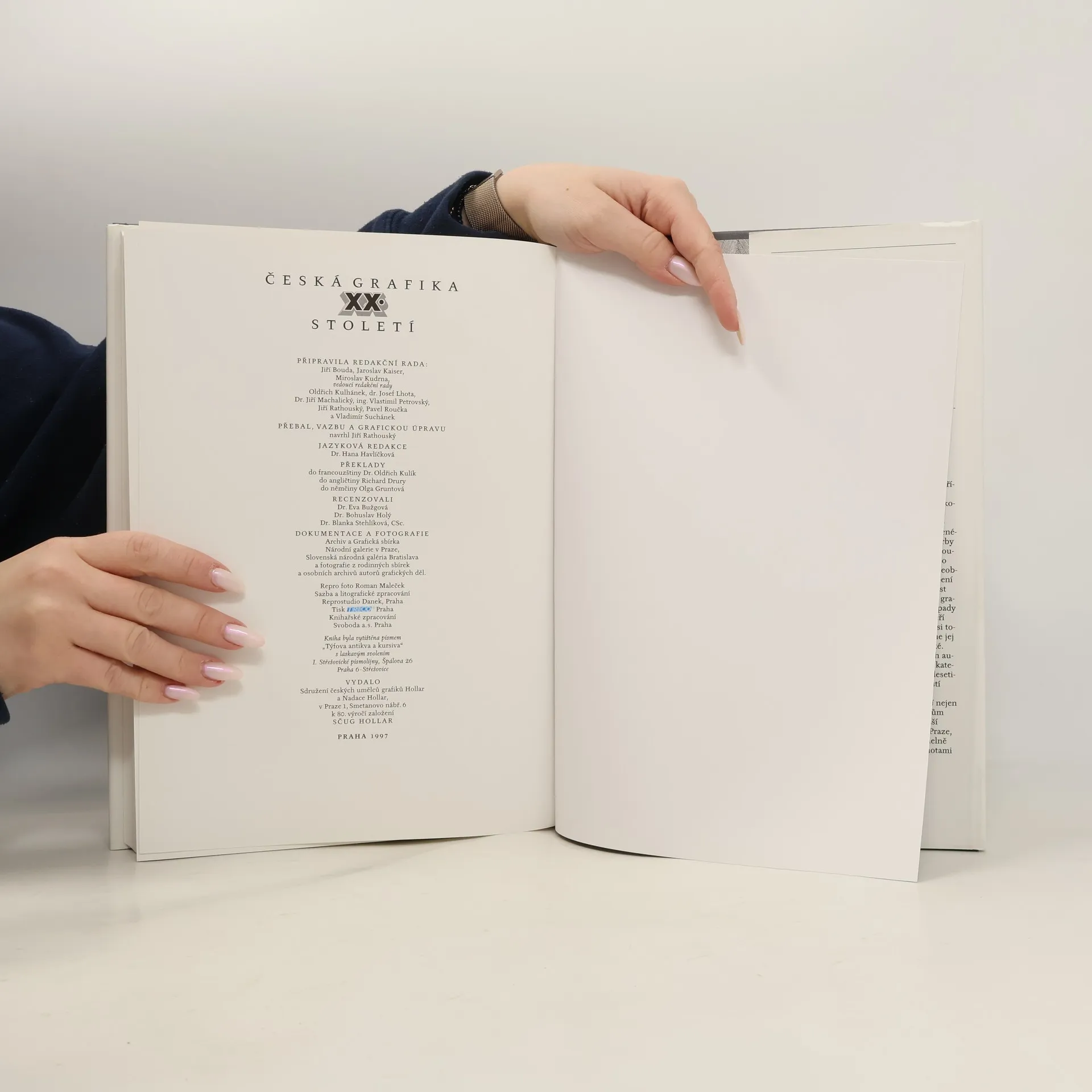 Publikace, která ukazuje naši grafickou tvorbu v její šíři a bohatství. Vydání se ujal SČUG Hollar a dal v ní prostor historii české grafiky celého 20. století od Švabinského a Preissiga až po současnost. Přínosem knihy je koncepce obrazové části, která uvádí jednotlivé autory chronologicky podle data narození. Poskytuje tak přehledný obraz vývoje moderní grafiky a dosahuje tím překvapivých generačních vazeb. Publikace se vztahuje k SČUG Hollar a zároveň zahrnuje také autory, kteří se nikdy nestali jeho členy a přitom hráli nebo hrají důležitou úlohu v celkových souvislostech. Zdůrazňuje rozhodující umělecké proudy a směry od symbolismu přes expresionismus, kubismus, sociální umění dvacátých let, neoklasicismus, Skupinu 42 a svobodně experimentující projev šedesátých let až po dnešní dobu. Přispívá ke zdůraznění postavení grafiky v českém umění a zároveň naznačuje význam "Hollaru" pro její vývoj. V historické části jsou reprodukována díla z Grafické sbírky Národní galerie. Na ni navazuje kapitola věnovaná současnosti, v níž se přece jen klade důraz na členy spolku nebo na osobnosti spojené s jeho činností.