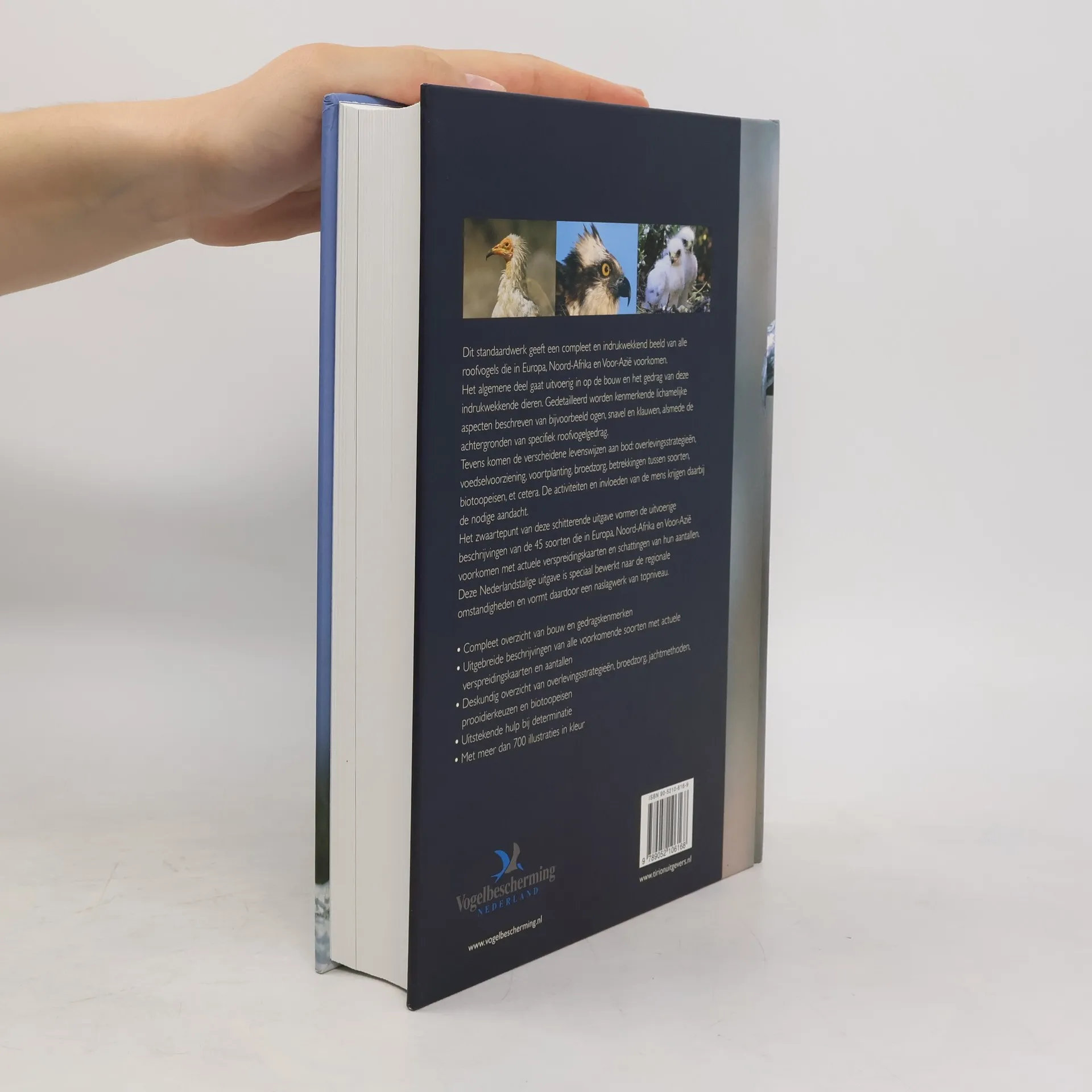 Dit standaardwerk geeft een compleet en indrukwekkend beeld van alle roofvogels die in Europa, Noord-Afrika en Voor-Azië voorkomen.Het algemene deel gaat uitvoerig in op de bouw en het gedrag van deze indrukwekkende dieren. Gedetailleerd worden kenmerkende lichamelijke aspecten beschreven van bijvoorbeeld ogen, snavel en klauwen, alsmede de achtergronden van specifiek roofvogelgedrag.Tevens komen de verscheidene levenswijzen aan bod: overlevingsstrategieën, voedselvoorziening, voortplanting, broedzorg, betrekkingen tussen soorten, biotoopeisen, et cetera. De activiteiten en invloeden van de mens krijgen daarbij de nodige aandacht.Het zwaartepunt van deze schitterende uitgave vormen uitvoerige beschrijvingen van de 45 soorten die in Europa, Noord-Afrika en Voor-Azië voorkomen met actuele verspreidingskaarten en schattingen van hun aantallen.Deze Nederlandstalige uitgave is speciaal bewerkt naar de regionale omstandigheden en vormt daardoor een naslagwerk van topniveau.