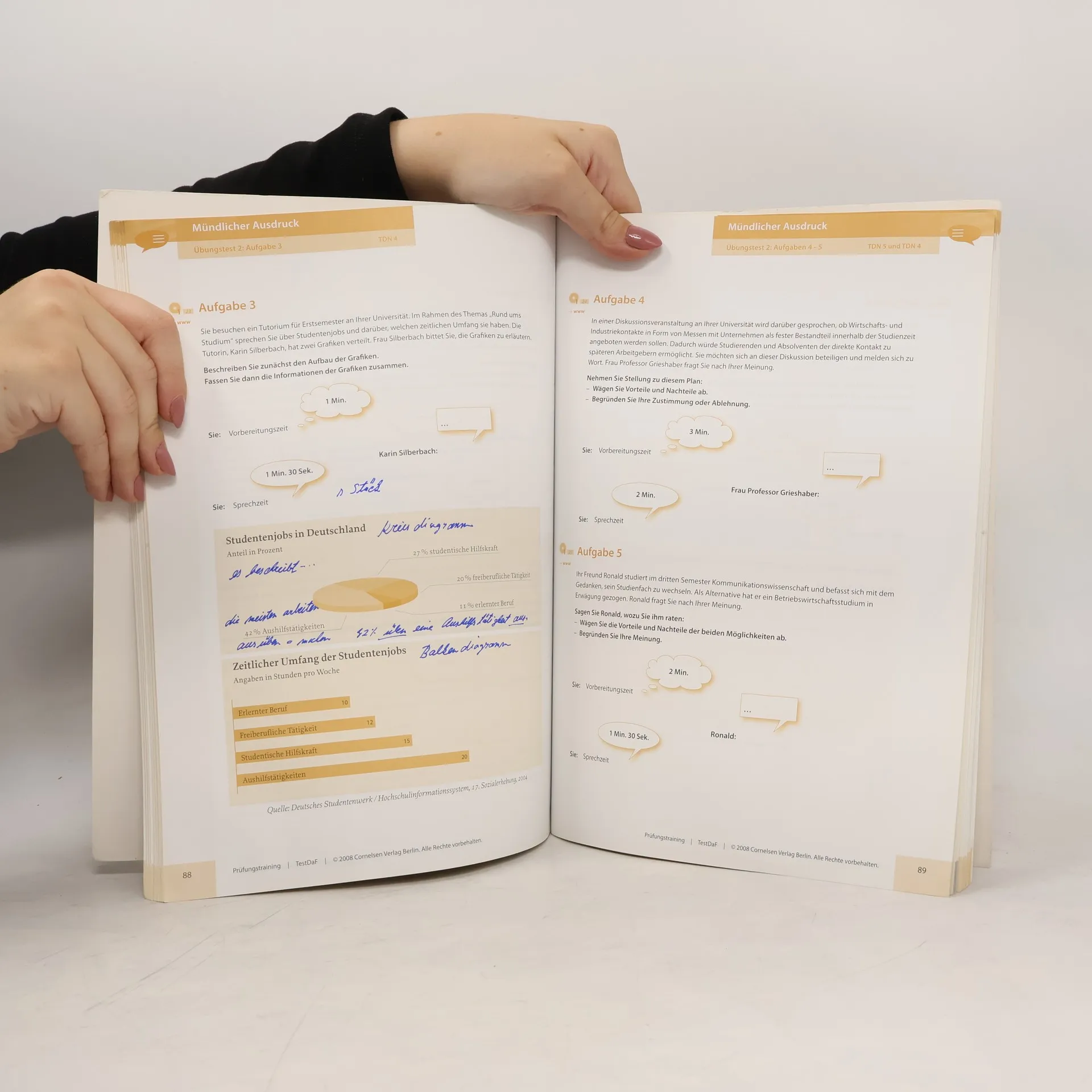 Das Prüfungstraining TestDaF bietet eine gründliche Vorbereitung auf den TestDaF. Es eignet sich sowohl für den Einsatz in Kursen als auch für die selbstständige Prüfungsvorbereitung. Der erste Übungstest führt die Kandidatinnen und Kandidaten schrittweise an die Prüfung heran und vermittelt Hinweise, Tipps und Strategien zur Prüfungsvorbereitung. Die Übungstests 2 und 3 dienen dem vertiefenden Training. Mit dem vom TestDaF -lnstitut autorisierten Modelltest kann die Prüfung realitätsnah durchgeführt werden. Im separaten Einleger finden Sie die Transkripte der Hörtexte und der Impulse des Mündlichen Ausdrucks sowie die Lösungen der Aufgaben zu Lese- und Hörverstehen und den Erwartungshorizont für die Aufgaben zum Schriftlichen und Mündlichen Ausdruck. Mit einer erfolgreich bestandenen Prüfung weist man gute bis sehr gute Kenntnisse der deutschen Standardsprache auf dem Niveau B2 bzw. C1 des Gemeinsamen europäischen Referenzrahmens nach. Bei entsprechender Prüfungsleistung wird der TestDaF von Studienkollegs, Fachhochschulen und Universitäten als Sprachprüfung für den Hochschulzugang anerkannt. Lernenden, die für Studium oder Beruf Deutschkenntnisse benötigen, dient die Prüfung als qualifizierter Nachweis.