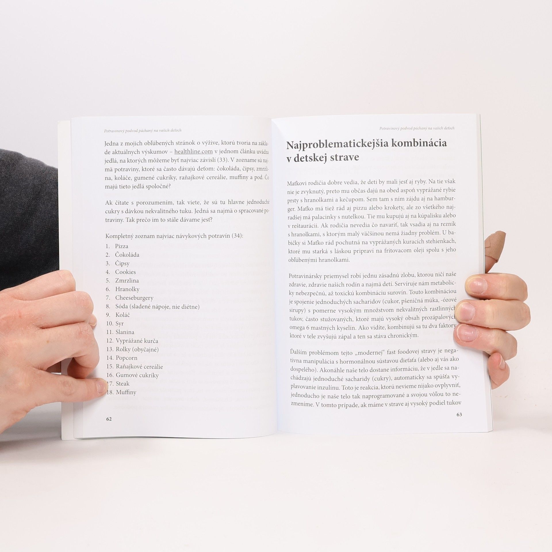 Kniha Mgr. Michala Patakyho Potravinový podvod páchaný na vašich deťoch odhaľuje zaujímavé fakty a súvislosti o tzv. detských potravinách. Okrem iného sa v nej dozviete, aké nevhodné suroviny sa nachádzajú takmer vo všetkých detských (p)otravinách a poodhalí aj skutočnosť o bežných výrobkoch a podvodných praktikách (p)otravinárskeho priemyslu. Po prečítaní knihy zistíte, že obľubené detské menu v reštauráciách, či raňajkové cereálie môžu byť zodpovedné za mnohé problémy a pritom im vôbec nepripisujeme vinu. Problematickými môžu byť aj potraviny, ktoré bežne ľudia považujú za zdravé a pritom majú viac negatívneho ako pozitívneho vplyvu na ľudský organizmus. Vďaka knihe získate aj návod na to, ako sa vymaniť z tohto podvodu a žiť zdravším životným štýlom, či jesť oveľa zdravšie alternatívy bežných detských (p)otravín. Záver knihy obsahuje bonusy, ktoré vám a vašim deťom pomôžu žiť a jesť kvalitnejšie a pochopiť hlbšie problematiku detských potravín. Prečítajte si názory a odporúčania pre skvalitnenie stravovania našej budúcej generácie nie len od autora knihy, ale aj od iných popredných odborníkov.