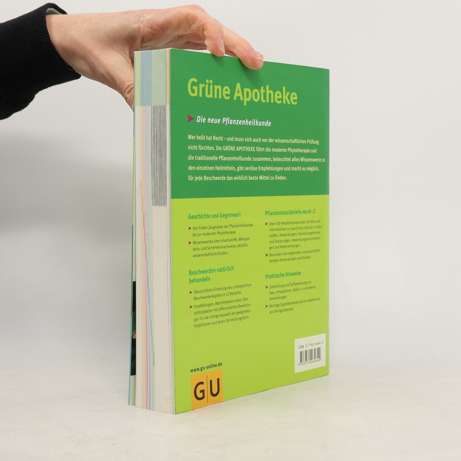 Das moderne Nachschlagewerk zur Pflanzenheilkunde „Gegen (fast) jede Krankheit ist ein Kraut gewachsen“ – man muss nur wissen welches. Doch dabei hilft nun das moderne Standardwerk zur Kräuterheilkunde, in dem neben traditionellen Heiltees auch wirksame pflanzliche Präparate empfohlen werden. Die „Grüne Apotheke“ bietet einen Überblick über die Geschichte der Kräuterheilkunde und die Entwicklung der modernen, wissenschaftlich fundierten Phytotherapie, ein umfassendes Beschwerdenkapitel und über 100 ausführliche Kräutersteckbriefe. In dem nach Körperbereichen gegliederten Beschwerdenkapitel findet der Leser für jede Beschwerde mehrere wirksame Heilkräuter. Empfehlungen, Warnhinweise sowie Übersichtstabellen mit Bewertungen am Ende jedes Bereiches machen die Auswahl aber ganz einfach. Ein Muss für alle, die pflanzliche Heilmittel synthetischen vorziehen, aber auch Wert auf wissenschaftliche Wirksamkeits- und Sicherheitsnachweise legen.