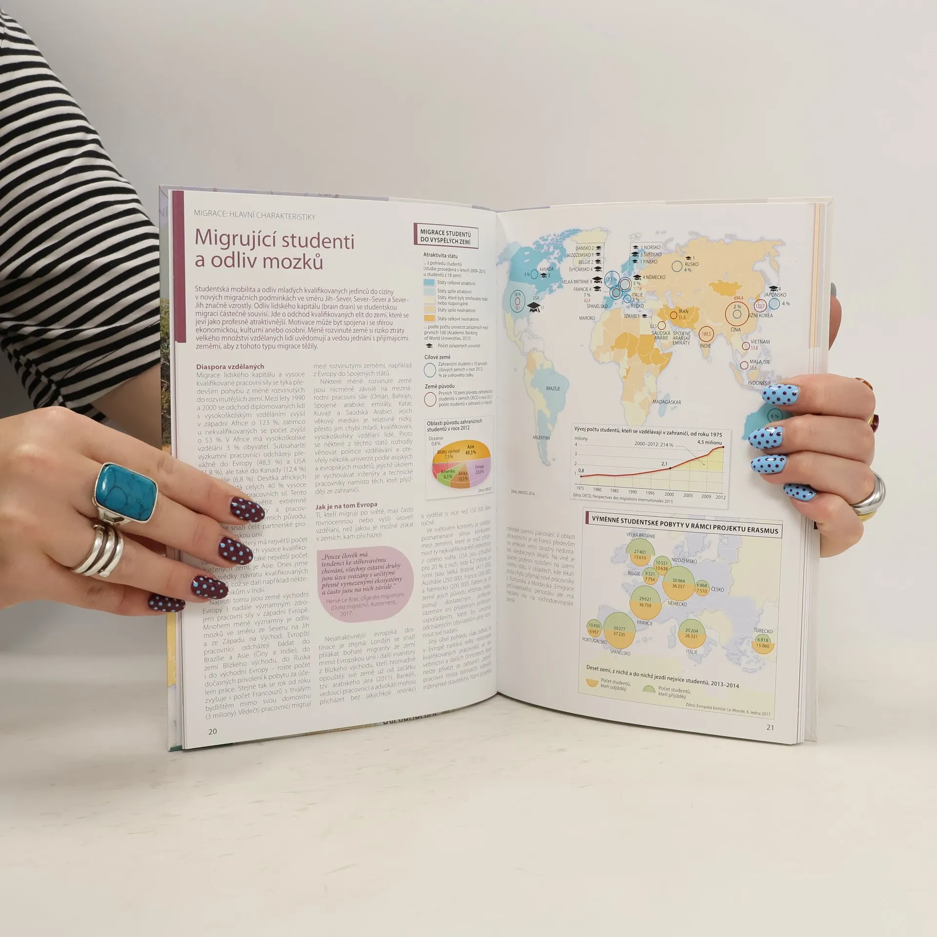Zcela nová a aktuální publikace odhaluje podstatu trendů v pohybu lidstva v současném globálním světě. Přináší odpovědi na otázky, kam se dnes lidé stěhují i proč, a také před čím prchají. Dnes existuje jen málo zemí a regionů, kterých by se migrace, ať už vnitrostátní, či mezinárodní, netýkala. Kniha se také věnuje hledání nové světové rovnováhy mezi kulturní homogenitou a potřebou pracovní síly. Klade politické otázky zítřka. Atlas je určen pro všechny zájemce o současný svět.