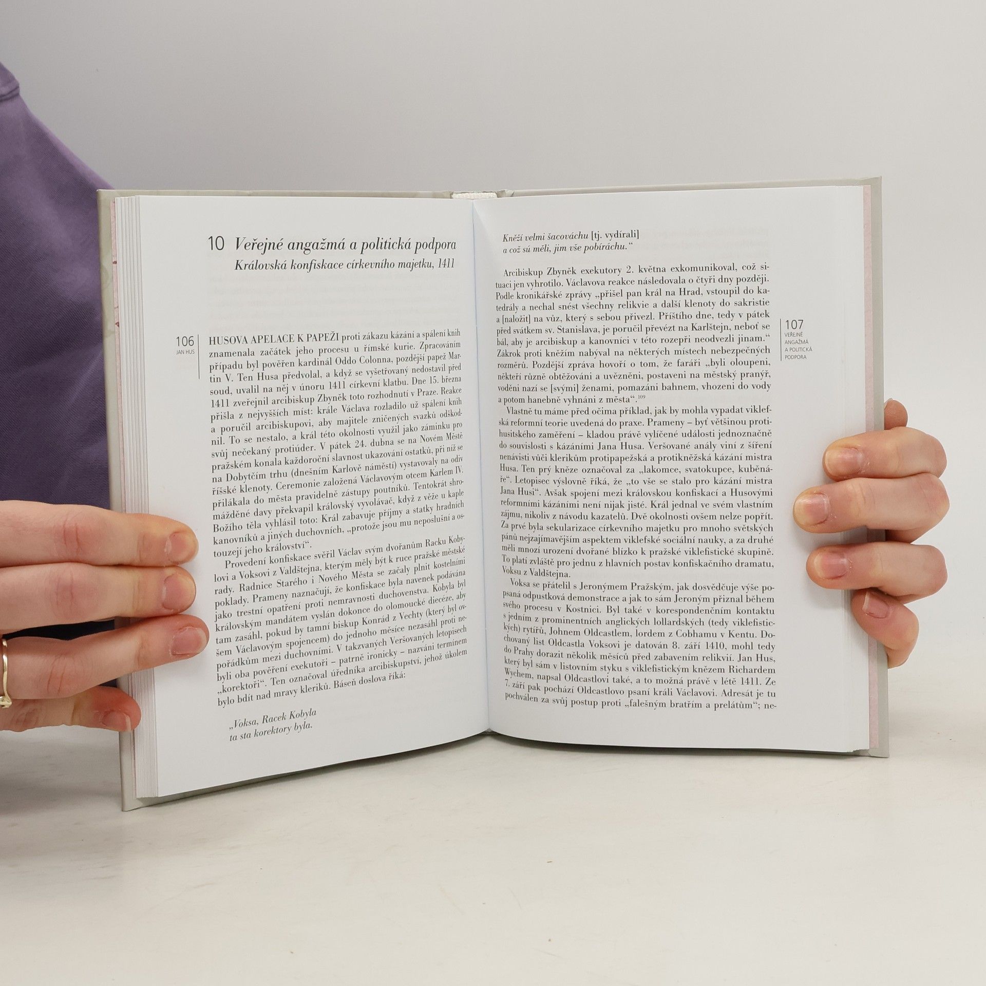 Když se Janu Husovi blížila čtyřicítka, zdál se být na vrcholu slávy a vlivu. Známý kazatel v Betlémské kapli a bakalář svaté teologie se těšil podpoře královského dvora i přátelství pražského arcibiskupa. Brzy ale přišly potíže: udání, procesy, klatba, vyhnanství a po něm odchod do Kostnice. Tam byl Hus nakonec uvězněn a upálen jako kacíř. Po celý život se přitom zabýval stejnými myšlenkami jako otcové kostnického koncilu – jak napravit zlořády v církvi, sužované papežským schizmatem a nedůstojným životním stylem kleriků. Co tedy otcové koncilu shledali na Janu Husovi tak nebezpečným, že jej poslali na smrt v plamenech? Kniha se zabývá genezí rozsudku a hledá jeho příčiny v osobitých rysech Husovy životní dráhy a veřejného působení. Líčí jeho úspěch a pád: jakými cestami se mu podařilo získat si proslulost a vytvořit okruh stoupenců a proč to přilákalo pozornost strážců dogmatu. Jan Hus je tu chápán jako příklad veřejně angažovaného učence, který se kvůli své popularitě dostane do vážných potíží. Zachytit život a smrt kazatele znamená zároveň dozvědět se něco o pozdně středověké společnosti, jejím chápání světa, jejím vnitřním napětí a předsudcích.