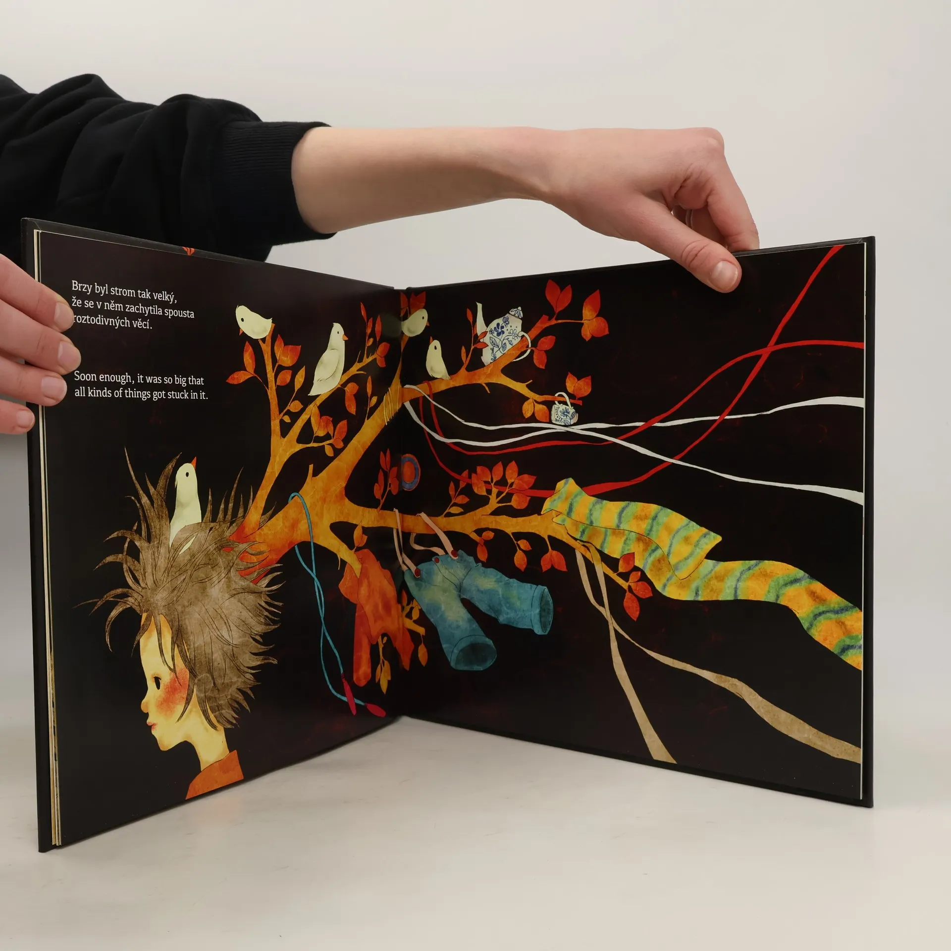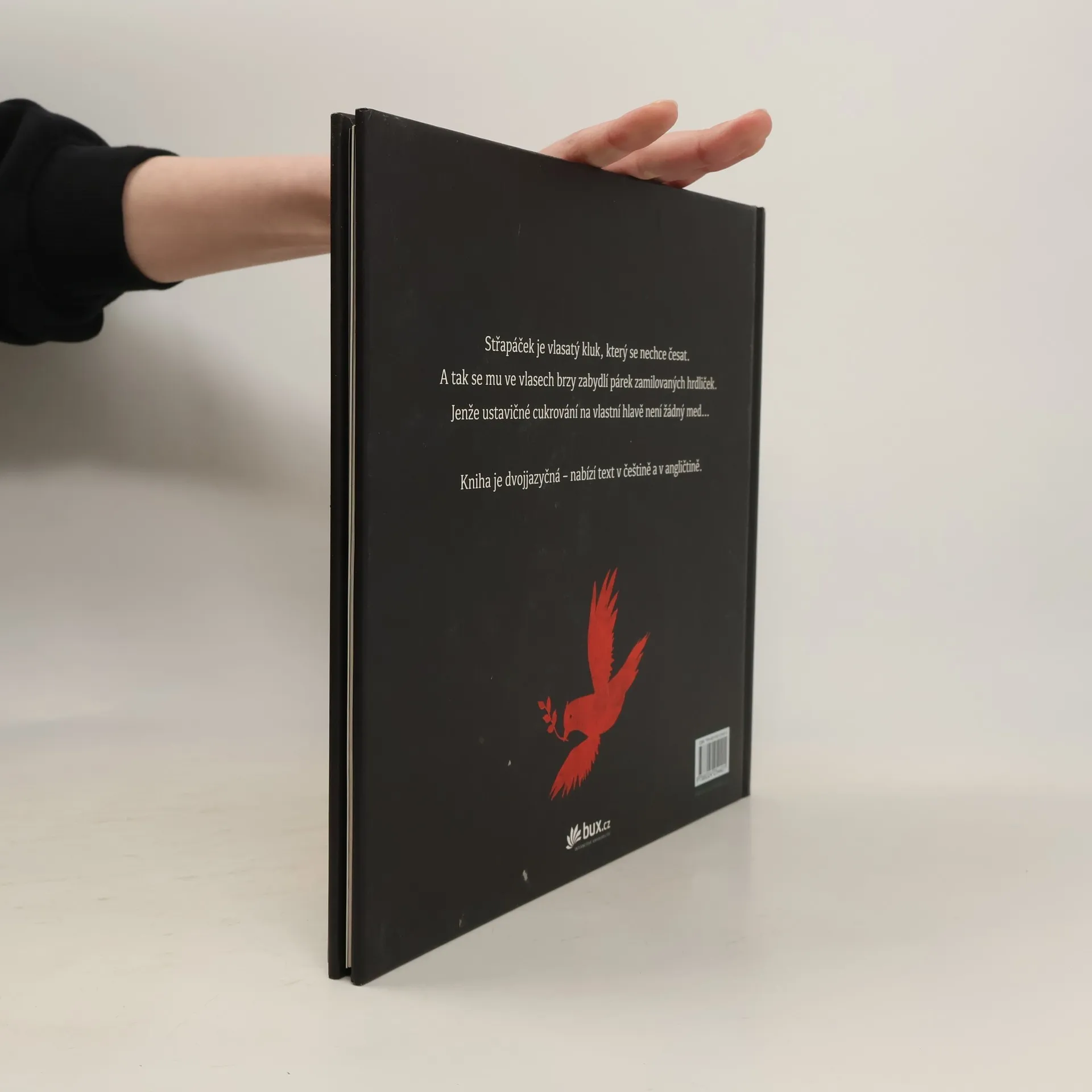Půvabná knížka pro nejmenší děti na první pohled upoutá obálkou s 3D efektem a poetickými ilustracemi, které spolu s hřejivým příběhem vytvářejí téměř snovou atmosféru. Střapáček je vlasatý kluk, který odmítá hřeben. A tak se mu ve vlasech brzy zabydlí párek hrdliček a zanedlouho vyvede mláďata, ba dokonce mu z vlasů vyroste strom! Jenže ustavičné cukrování hrdliček na vlastní hlavě není žádný med… Kniha vychází dvojjazyčně – nabízí paralelní text v češtině a v angličtině.
