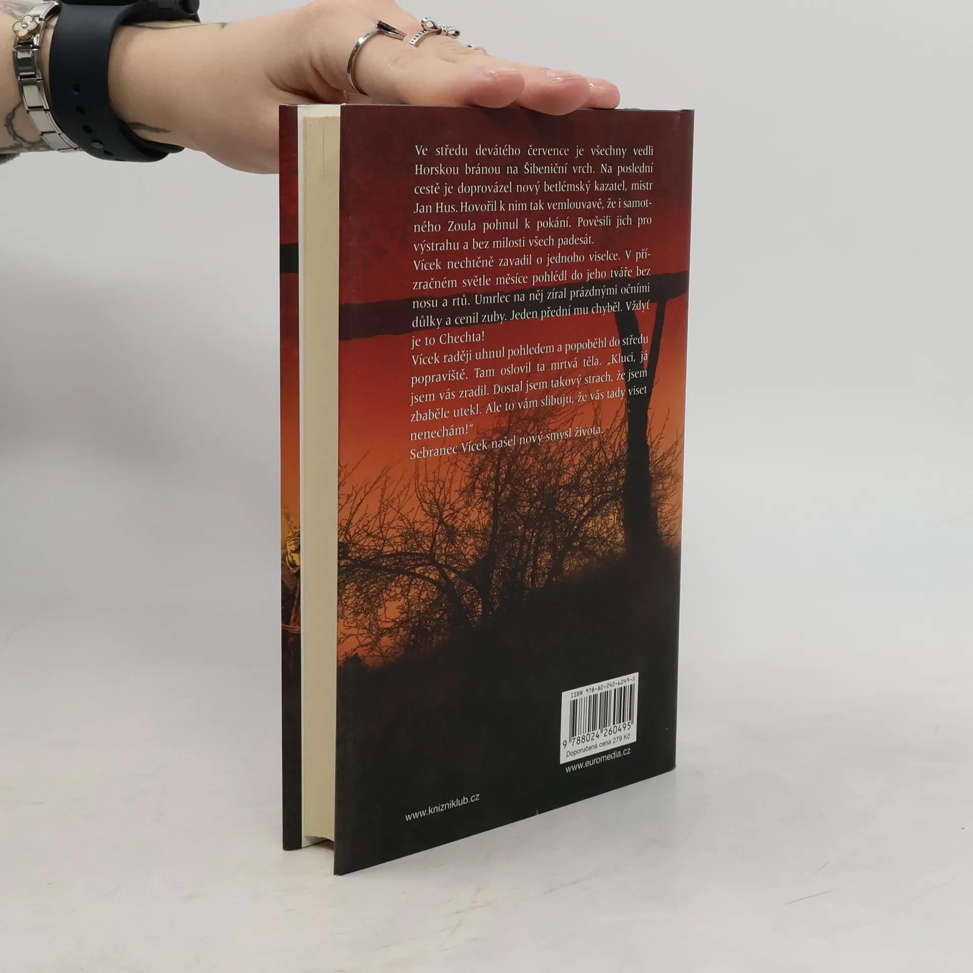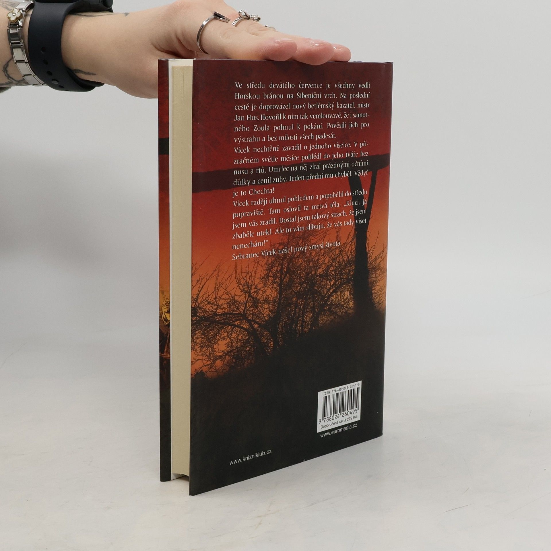 Oblíbený autor uzavírá svou volnou sérii historických příběhů s detektivní zápletkou románem, jehož hlavním hrdinou je opět Václav od Černého koně. Tentokrát řeší velmi zapeklitý případ, neboť u vchodů staropražských domů se znenadání začínají objevovat nebožtíci, které někdo sňal ze Šibeničního vrchu. U kostela svatého Jindřicha se vraždí a podezřelý je i biřic Vohnout. Ale hlavně: Odváží se podrychtář obžalovat všemocného podkomořího Zikmunda Hulera, králova oblíbence, který si nechává říkat Zikmund z Orlíka?