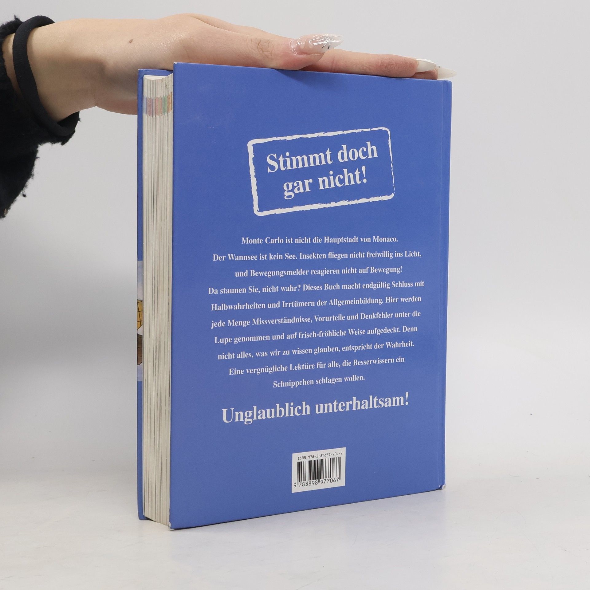 Monte Carlo ist nicht die Hauptstadt von Monaco. Der Wannsee ist kein See. Insekten fliegen nicht freiwillig ins Licht und Bewegungsmelder reagieren nicht auf Bewegung! Da staunen Sie, nicht wahr? Dieses Buch macht endgültig Schluss mit Halbwahrheiten und Irrtümern der Allgemeinbildung. Hier werden jede Menge Missverständnisse, Vorurteile und Denkfehler unter die Lupe genommen und auf frisch-fröhliche Weise aufgedeckt. Denn nicht alles, was wir zu wissen glauben, entspricht der Wahrheit. Eine vergnügliche Lektüre für alle, die Besserwissern ein Schnippchen Schlagen wollen.