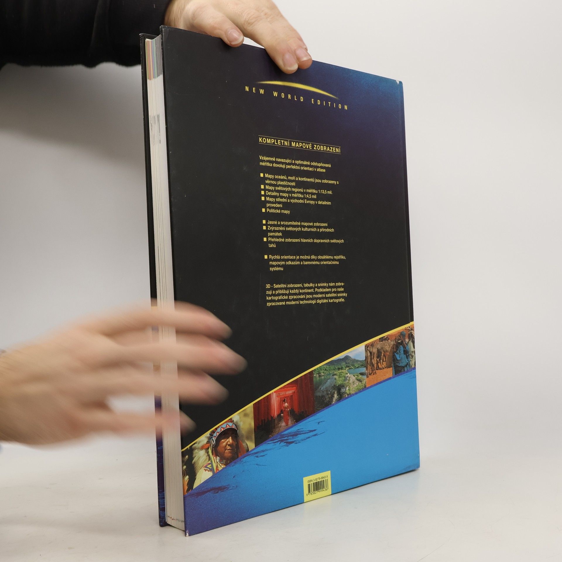 Vzájemně navazující a optimálně odstupňovaná měřítka dovolují perfektní orientaci v atlase. Mapy oceánů, moří a kontinentů jsou zobrazeny s věrnou plastičností.Mapy světových regionů v měřítku 1:13,5 mil. Detailní mapy v měřítku 1:4,5 mil. Mapy střední a východní Evropy v detailním provedení. Politické mapy. Jasné a srozumitelné mapové zobrazení. Zvýraznění světových kulturních a přírodních památek. Přehledné zobrazení hlavních dopravních světových tahů. Rychlá orientace je možná díky obsáhlému rejstříku, mapovým odkazům a barevnému orientačnímu systému.3D - Satelitní zobrazení, tabulky a snímky zobrazují a přibližují každý kontinent. Podkladem pro kartografické zpracování jsou moderní satelitní snímky zpracované moderní technologií digitální kartografie.