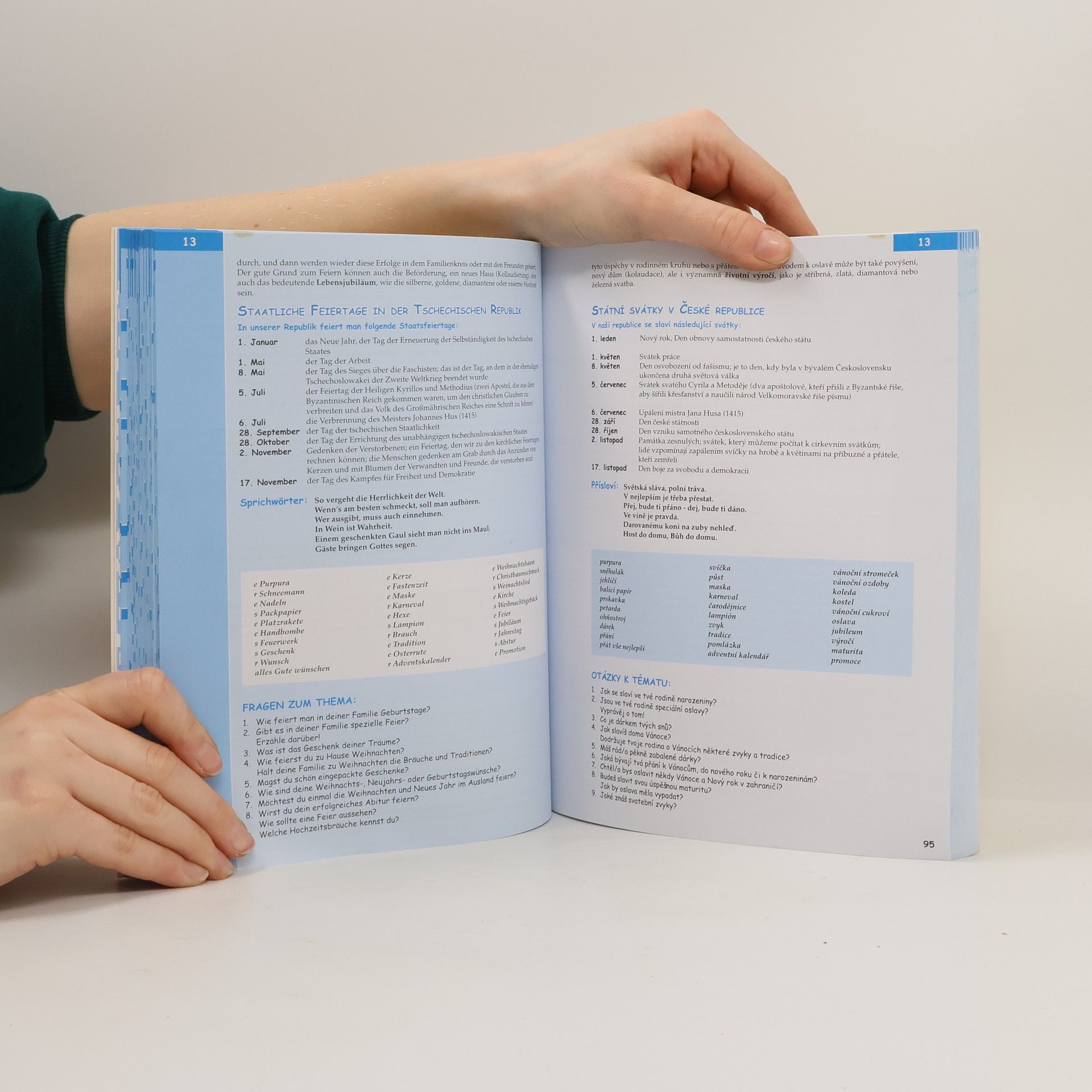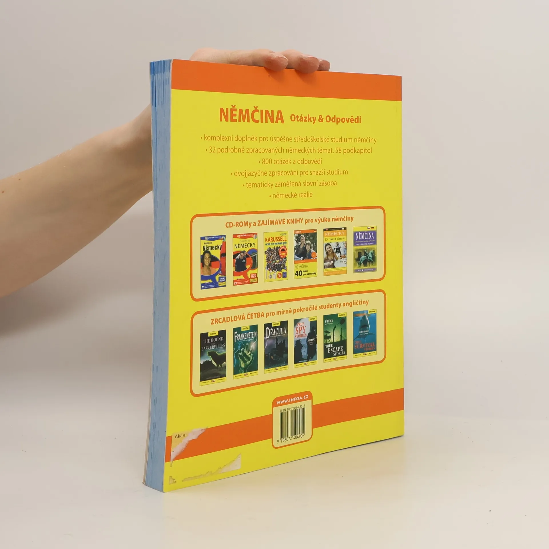 Podrobně zpracovaná témata k maturitě formou otázek a odpovědí (cca 800), zrcadlový text pro snazší studium, tematicky zaměřená slovní zásoba.