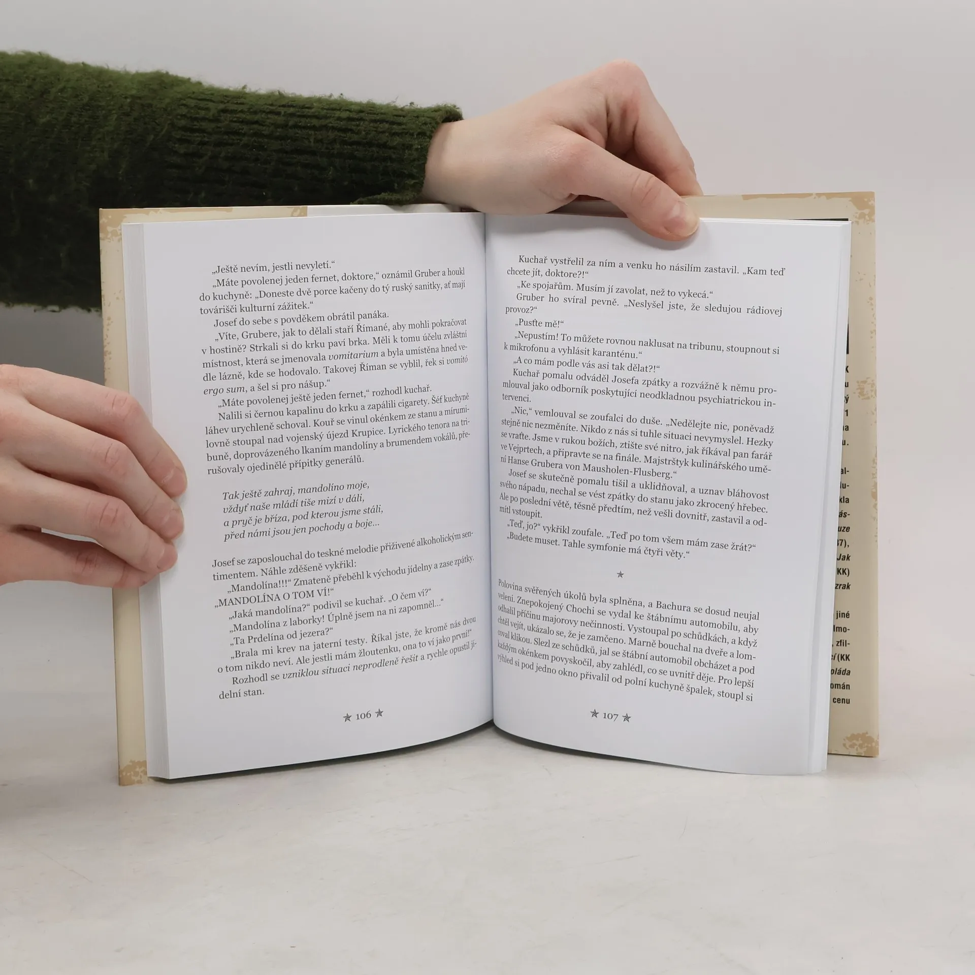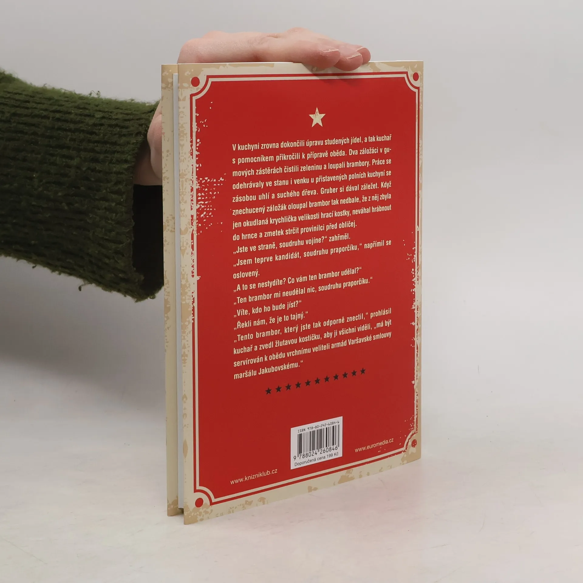 Je začátek normalizace. 51. vojenský prapor potrubní dopravy provedl povinné čistky, mezi suspendovanými je i prostořeký štábní lékař Josef a prvotřídní kuchař útvaru Hans. Navzdory politické nespolehlivosti jsou nečekaně povoláni do akce. V bohem zapomenutém újezdu Krupice bude probíhat cvičení československých a sovětských vojsk za účasti nejvyšších velitelů a kuchař s lékařem dostanou úkol: Josef má zaručit nezávadnost stravy coby ochutnávač, kdežto šéfkuchař musí osvědčit zkušenosti z přepychových hotelů. Oba vědí, že pokud se před papaláši něco pokazí, schytají to oni. A to náš mladý doktor nenápadně zatajil nákazu infekční žloutenkou. Sovětský maršál s hepatitidou B by pro oba znamenal kriminál… Nezaměnitelně ironické vyprávění autora básnické hexalogie se vrací do těžké doby, opět viděné prizmatem „veselé vědy o smutných věcech“.