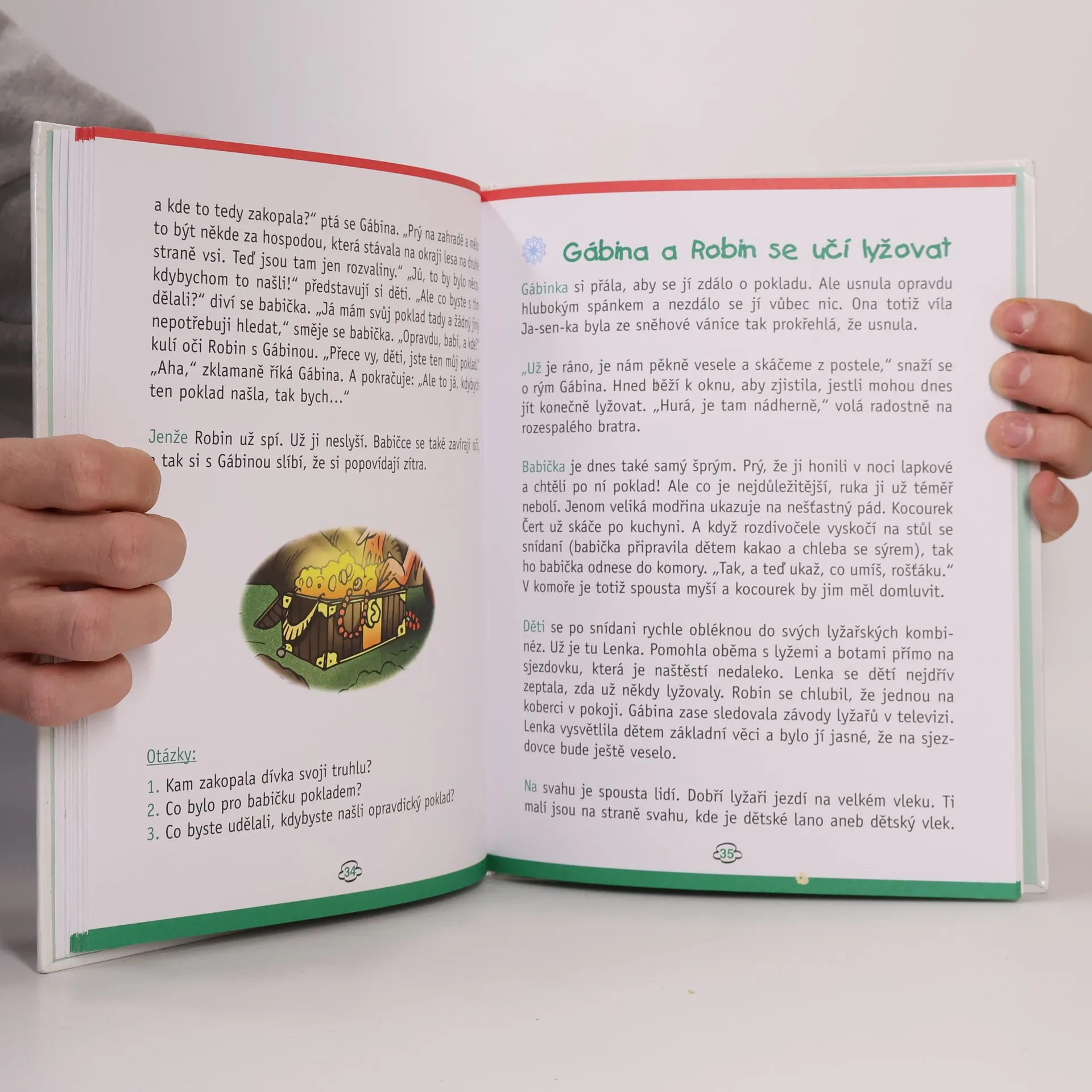 Pokračování příhod Gábinky a její rodiny. Tentokrát jede Gábinka k babičce na vánoční prázdniny. Dozvíme se, jak se učí lyžovat, jak babička vypráví poučné pohádky, jak krmí lesní zvěř a další veselé zimní příhody. Kniha obsahuje devět příběhů, delších a složitějších než v první knize.
