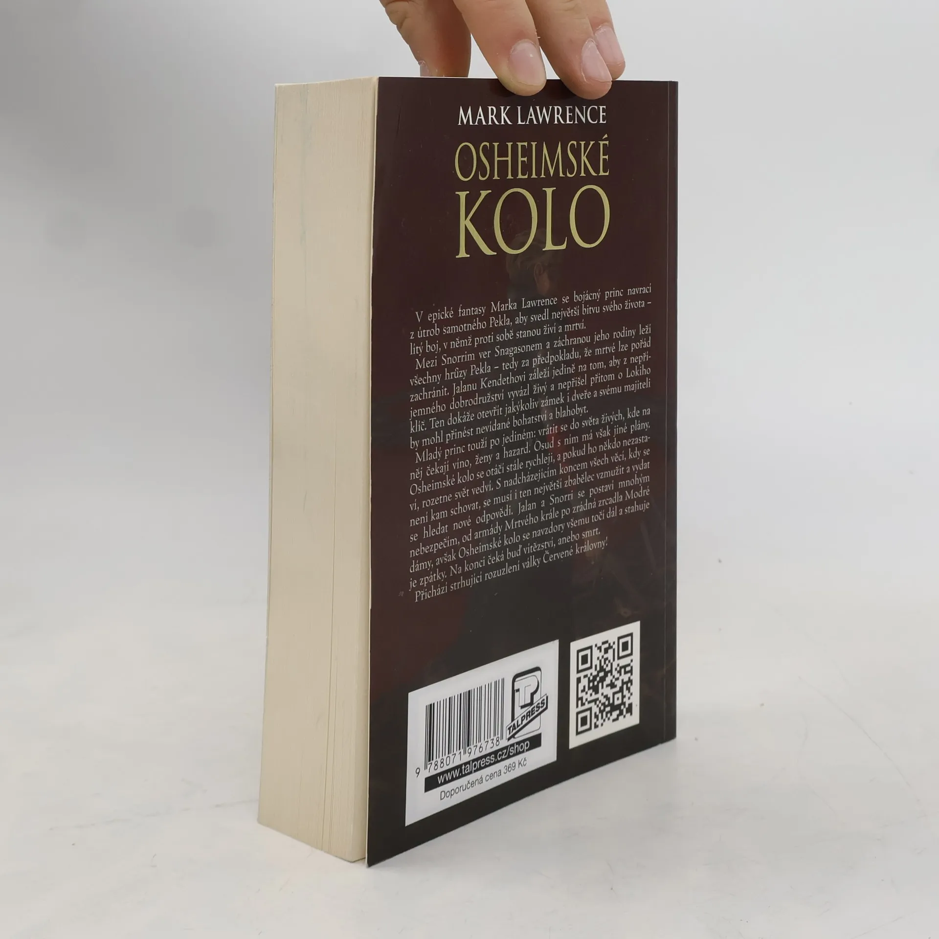 V epické fantasy Marka Lawrence se bojácný princ navrací z útrob samotného Pekla, aby svedl největší bitvu svého života - lítý boj, v němž proti sobě stanou živí a mrtví. Mezi Snorrim ver Snagasonem a záchranou jeho rodiny leží všechny hrůzy Pekla - tedy za předpokladu, že mrtvé lze pořád zachránit. Jalanu Kendethovi záleží jedině na tom, aby z nepříjemného dobrodružství vyvázl živý a nepřišel přitom o Lokiho klíč. Ten dokáže otevřít jakýkoliv zámek i dveře a svému majiteli by mohl přinést nevídané bohatství a blahobyt. Mladý princ touží po jediném: vrátit se do světa živých, kde na něj čekají víno, ženy a hazard. Osud s ním má však jiné plány. Osheimské kolo se otáčí stále rychleji, a pokud ho někdo nezastaví, rozetne svět vedví. S nadcházejícím koncem všech věcí, kdy se není kam schovat, se musí i ten největší zbabělec vzmužit a vydat se hledat nové odpovědi. Jalan a Snorri se postaví mnohým nebezpečím, od armády Mrtvého krále po zrádná zrcadla Modré dámy, avšak Osheimské kolo se navzdory všemu točí dál a stahuje je zpátky. Na konci čeká buď vítězství, anebo smrt. Přichází strhující rozuzlení války Červené královny!