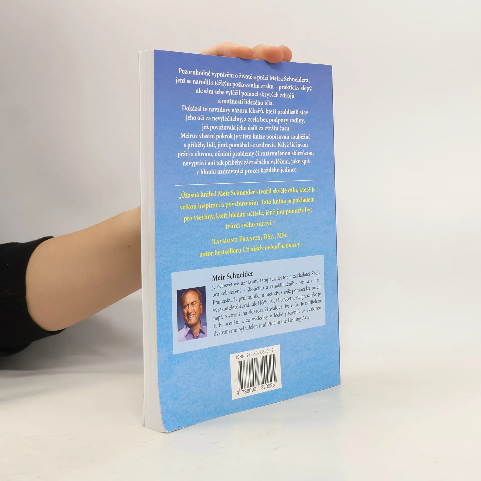 Pozoruhodné vyprávění o životě a práci Meira Schneidera, jenž se narodil s těžkým poškozením zraku – prakticky slepý, ale sám sebe vyléčil pomocí skrytých zdrojů a možností lidského těla. Dokázal to navzdory názoru lékařů, kteří prohlásili stav jeho očí za nevyléčitelný, a zcela bez podpory rodiny, jež považovala jeho úsilí za ztrátu času. Meirův vlastní pokrok je v této knize popisován souběžně s příběhy lidí, jimž pomáhal se uzdravit. Když líčí svou práci s obrnou, očními problémy či roztroušenou sklerózou, nevypráví ani tak příběhy zázračného vyléčení, jako spíš z hloubi uzdravující proces každého jedince. V knize najdete také konkrétní, jednoduché návody k sebeléčebné terapii podle metody Meira Schneidera, například: jak se zbavit bolestí zad