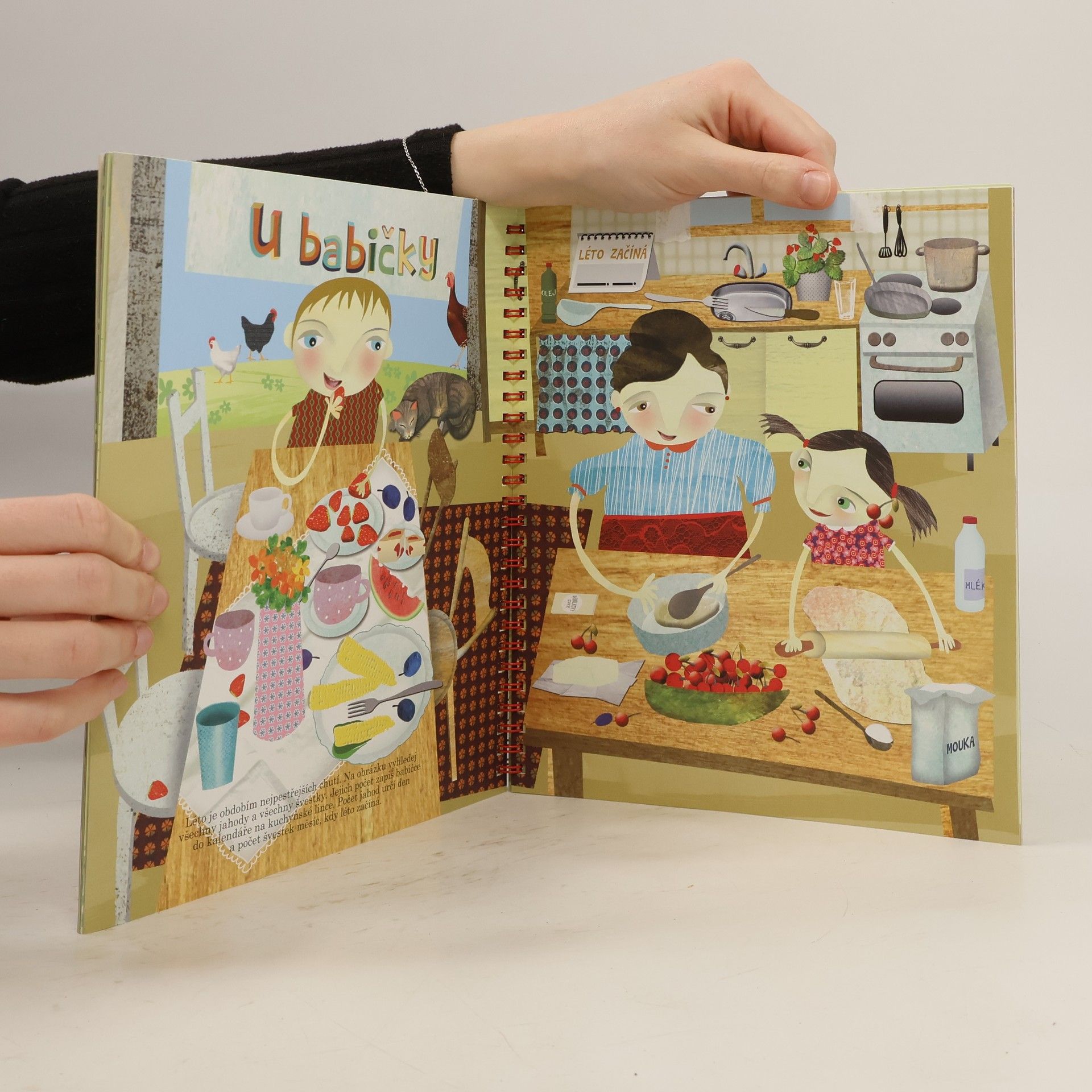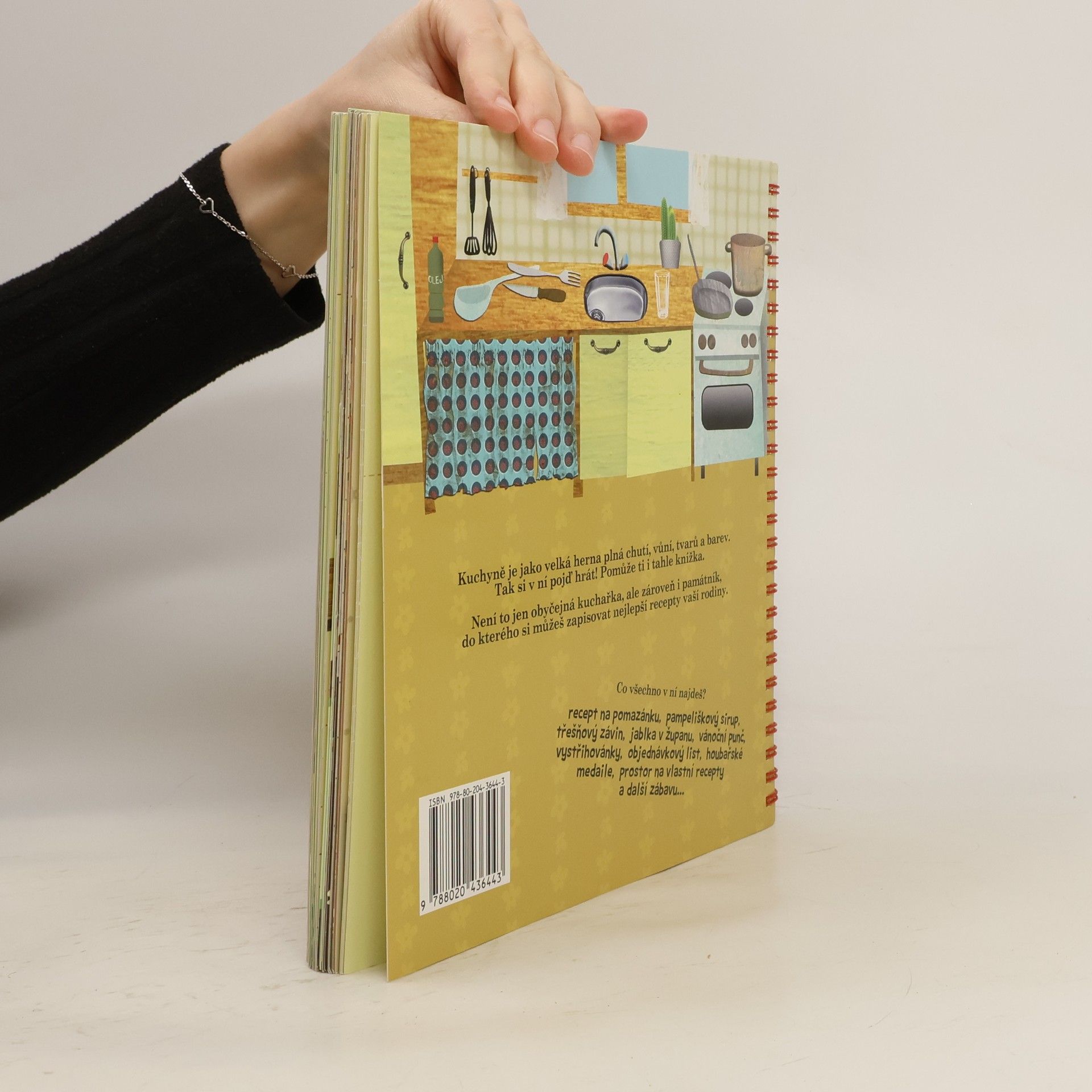 Kuchyně je jako herna plná barev, chutí a vůní a dají se v ní vykouzlit neobyčejné věci. Ještě zábavnější bude takové kouzlení za pomoci originálního kuchařského zápisníku. V jeho jednotlivých částech rozdělených podle ročních období se totiž neukrývají jen hotové návody na jednoduchá, ale chutná jídla (například na výtečný třešňový závin, tvarohovou pomazánku, pampeliškový sirup, dětský vánoční punč aj.), která děti dokážou vyrobit samy téměř bez pomoci, ale také možnost zapisovat si tradiční recepty maminek, tatínků, babiček či tetiček, jmenovky na sváteční stůl, nebo třeba deník hrachového lusku. Zkrátka, s touhle knížkou si v kuchyni užijete zábavu od jara až do zimy a navíc vám z ní časem vznikne neopakovatelná kuchařka!