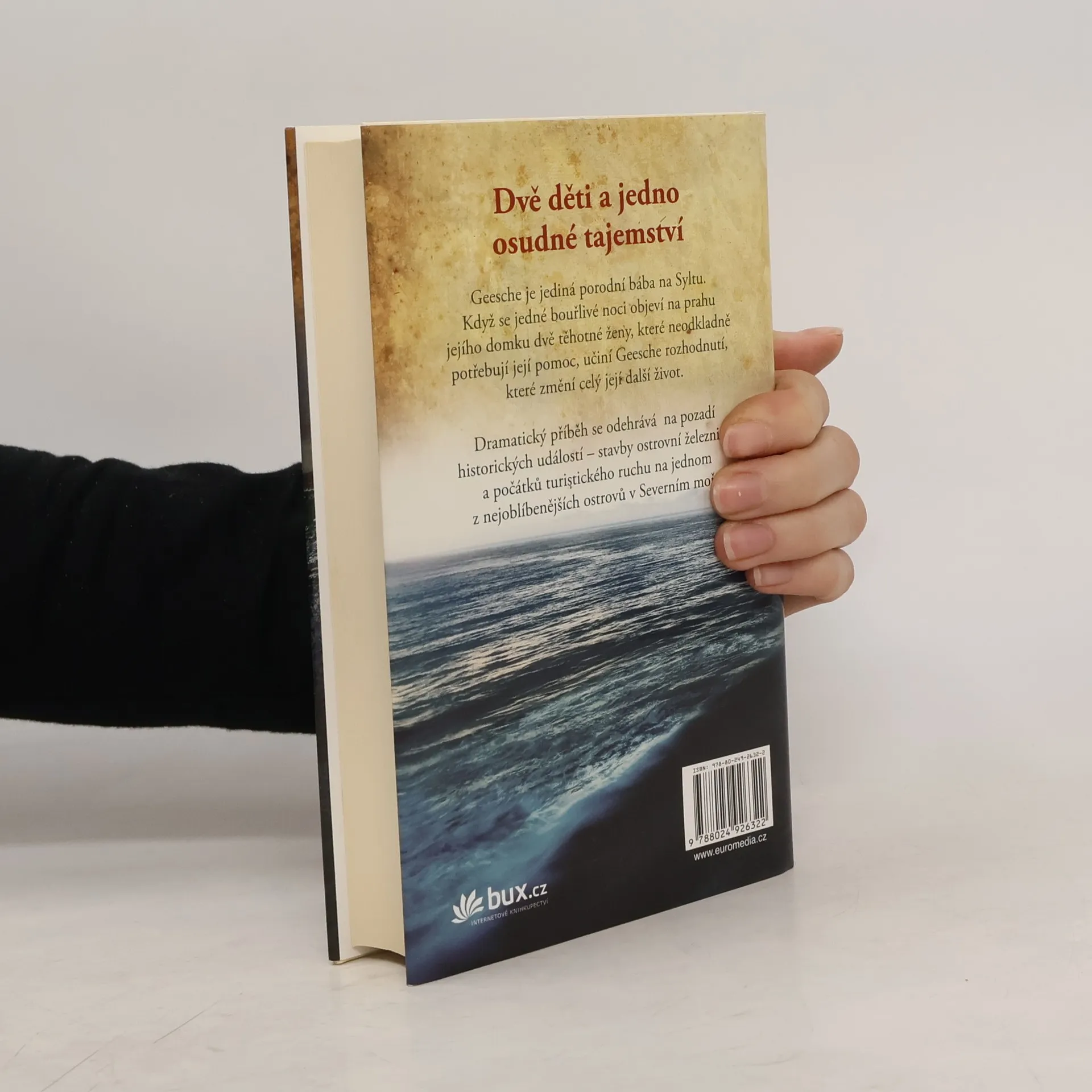 Dvě děti a jedno nebezpečné tajemství Geesche je jediná porodní bába na Syltu. Když se jedné bouřlivé noci objeví na prahu jejího domku dvě těhotné ženy, které neodkladně potřebují její pomoc, učiní Geesche rozhodnutí, které změní celý její další život. Dramatický příběh se odehrává na pozadí historických událostí – stavby ostrovní železnice a počátků turistického ruchu na jednom z nejoblíbenějších pobaltských ostrovů.