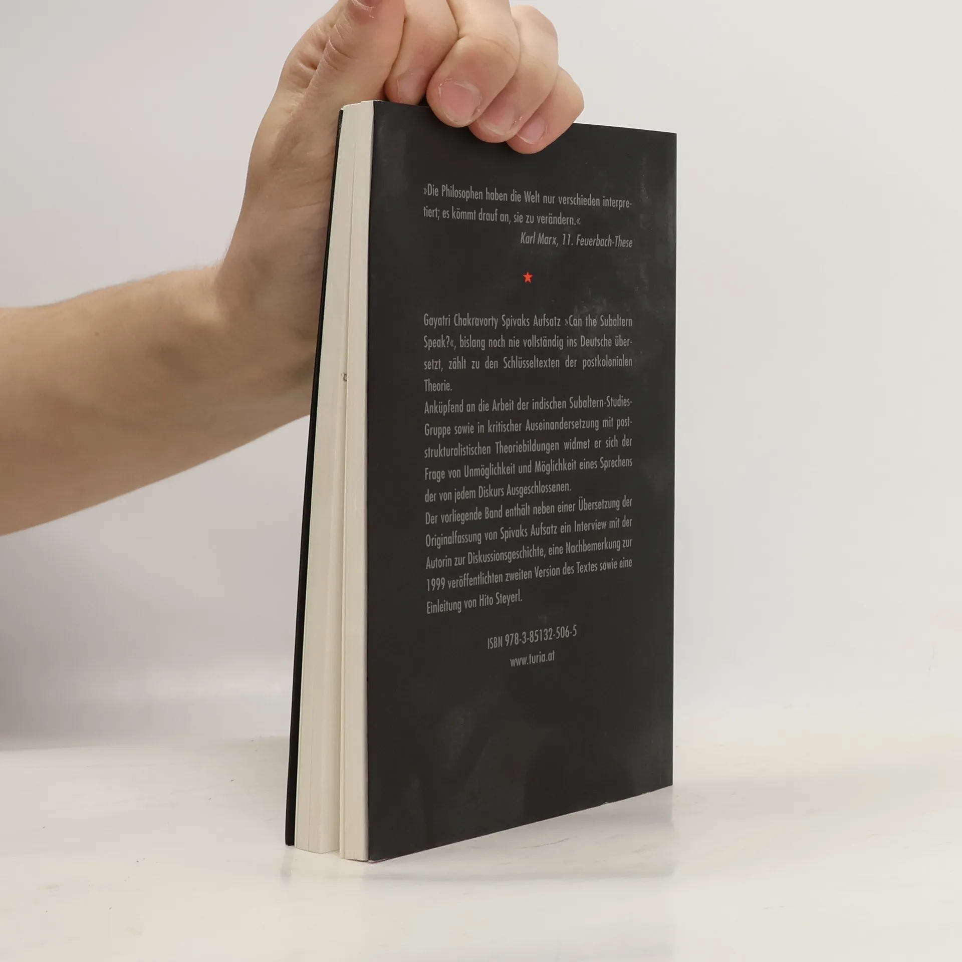Spivaks Aufsatz 'Can the Subaltern Speak?', bislang noch nie vollständig ins Deutsche übersetzt, zählt zu den Schlüsseltexten der postkolonialen Theorie. Anküpfend an die Arbeit der indischen Subaltern-Studies-Gruppe sowie in kritischer Auseinandersetzung mit poststrukturalistischen Theoriebildungen widmet er sich zentral der Frage von Unmöglichkeit und Möglichkeit eines Sprechens der Subalternen. Der vorliegende Band enthält neben einer Übersetzung der Originalfassung von Spivaks Aufsatz ein Interview mit der Autorin zur Diskussionsgeschichte, eine Nachbemerkung zur 1999 veröffentlichten zweiten Version des Textes sowie eine Einleitung von Hito Steyerl.