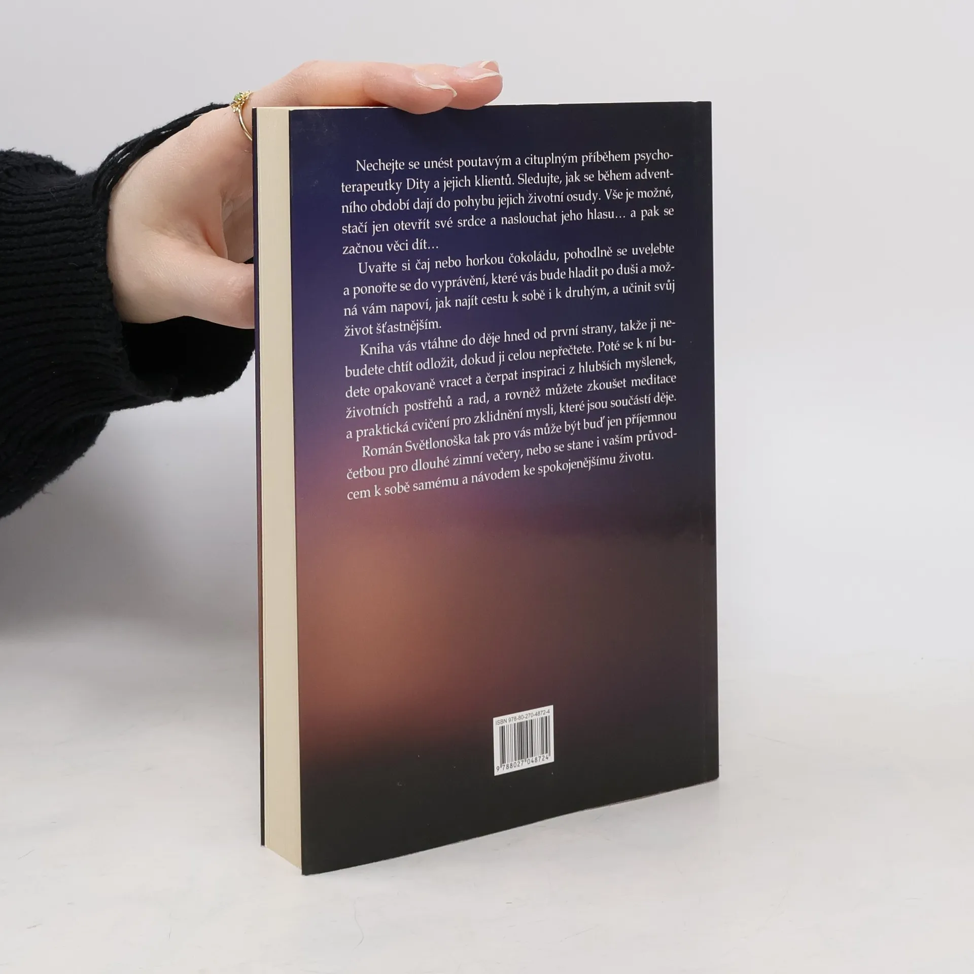 Nechejte se unést poutavým a cituplným příběhem psychoterapeutky Dity a jejích klientů. Sledujte, jak se během adventního období dají do pohybu jejich životní osudy. Vše je možné, stačí jen otevřít své srdce a naslouchat jeho hlasu... a pak se začnou věci dít... Uvařte si čaj nebo horkou čokoládu, pohodlně se uvelebte a ponořte se do vyprávění, které vás bude hladit po duši a možná vám napoví, jak najít cestu k sobě i k druhým, a učinit svůj život šťastnějším.