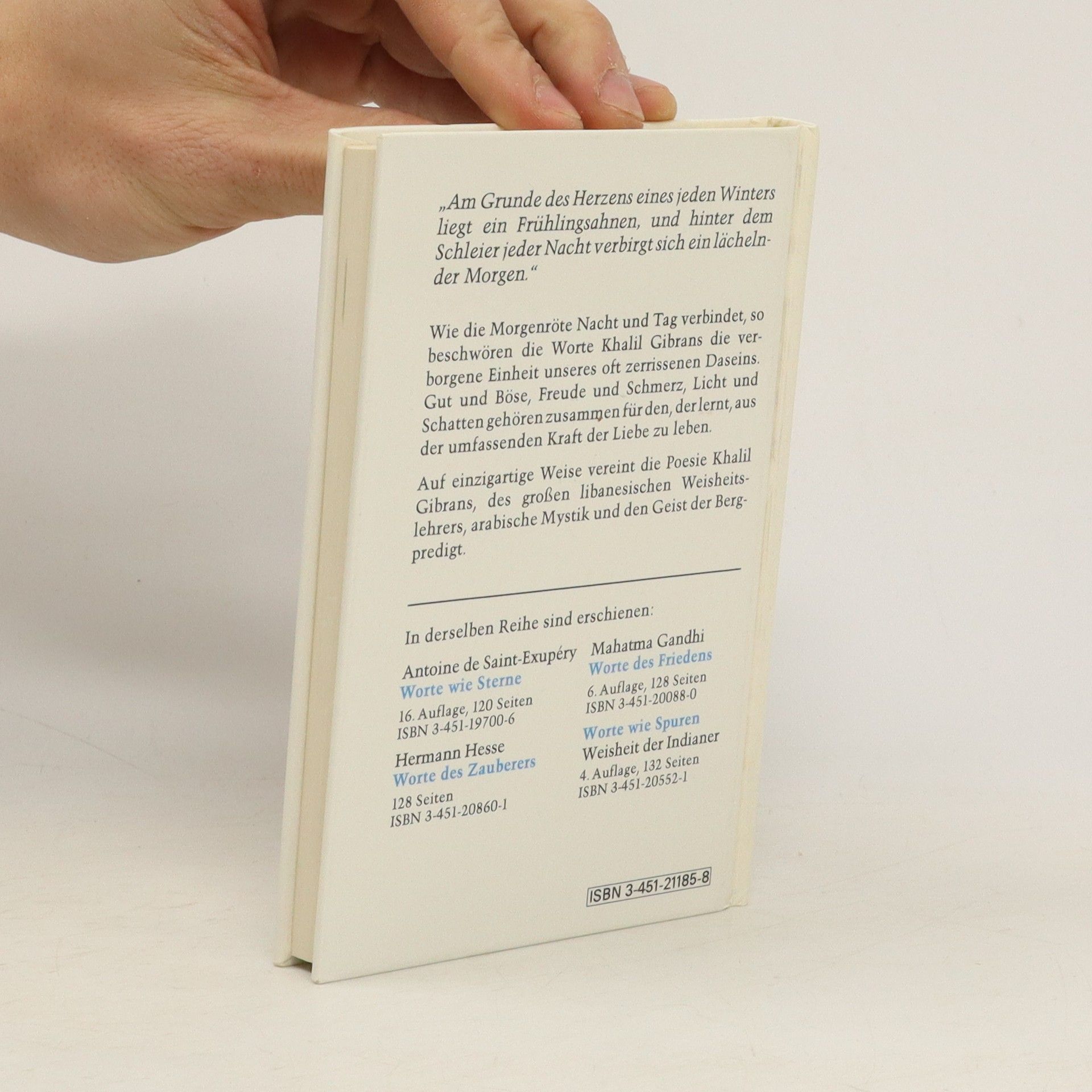 „Am Grunde des Herzens eines jeden Winters liegt ein Frühlingsahnen, und hinter dem Schleier jeder Nacht verbirgt sich ein lächelnder Morgen.“ Khalil Gibran weiß um die wahre, umfassende Schönheit und die grenzenlose Liebe des Lebens, die hinter allem verborgen liegen. Mit seiner Kunst, zeitlos spirituelle Weisheit mit einer tiefen Poesie der Seele zu verbinden, spricht der große libanesische Dichter vielen aus dem Herzen.