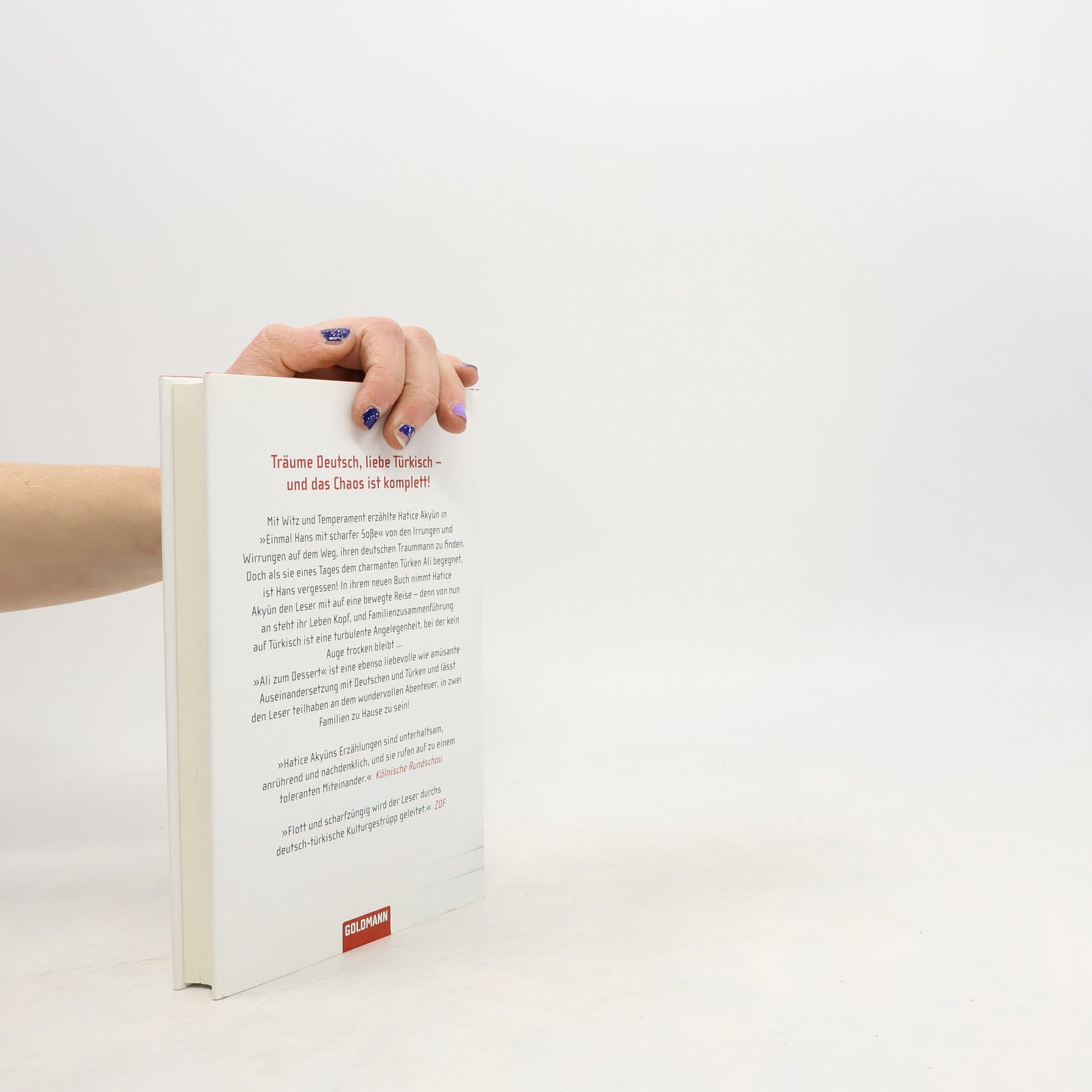 Träume deutsch, liebe türkisch – und das Chaos ist komplett Mit Witz und Temperament erzählte Hatice Akyün in ihrem ersten Buch von ihrem Leben zwischen Berlin und dem Bosporus – und von den Irrungen und Wirrungen auf dem Weg, einen deutschen Traummann, ihren „Hans mit scharfer Soße“, zu finden. Aber dann kommt alles ganz anders, denn als Hatice dem charmanten Ali begegnet – einem türkischen Hans –, gibt es kein Zurück mehr. Von nun an steht ihre Welt Kopf, denn Familienzusammenführung auf Türkisch ist eine turbulente Angelegenheit, bei der kein Auge trocken bleibt! Humorvoll und pointiert rückt die Autorin den Eigenarten ihrer türkischen und deutschen Landsleute zu Leibe und lässt den Leser teilhaben an dem wundervollen Abenteuer, in zwei Familien zu Hause zu sein.