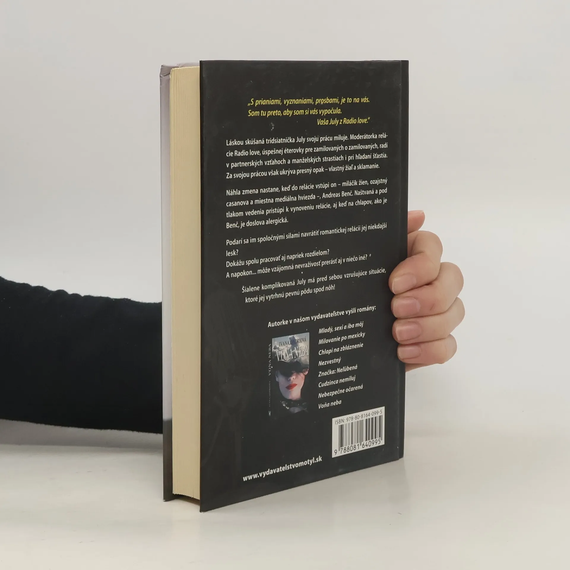 „S prianiami, vyznaniami, prosbami, je to na vás. Som tu preto, aby som si vás vypočula. Vaša July z Radio love.“ Láskou skúšaná tridsiatnička July svoju prácu miluje. Moderátorka relácie Radio love, úspešnej éterovky pre zamilovaných o zamilovaných, radí v partnerských vzťahoch a manželských strastiach i pri hľadaní šťastia. Za svojou prácou však ukrýva presný opak – vlastný žiaľ a sklamanie. Náhla zmena nastane, keď do relácie vstúpi on – miláčik žien, ozajstný casanova a miestna mediálna hviezda –, Andreas Benč. Naštvaná a pod tlakom vedenia pristúpi k vynoveniu relácie, aj keď na chlapov, ako je Benč, je doslova alergická. Podarí sa im spoločnými silami navrátiť romantickej relácii jej niekdajší lesk? Dokážu spolu pracovať aj napriek rozdielom? A napokon... môže vzájomná nevraživosť prerásť aj v niečo iné? Šialene komplikovaná July má pred sebou vzrušujúce situácie, ktoré jej vytrhnú pevnú pôdu spod nôh!