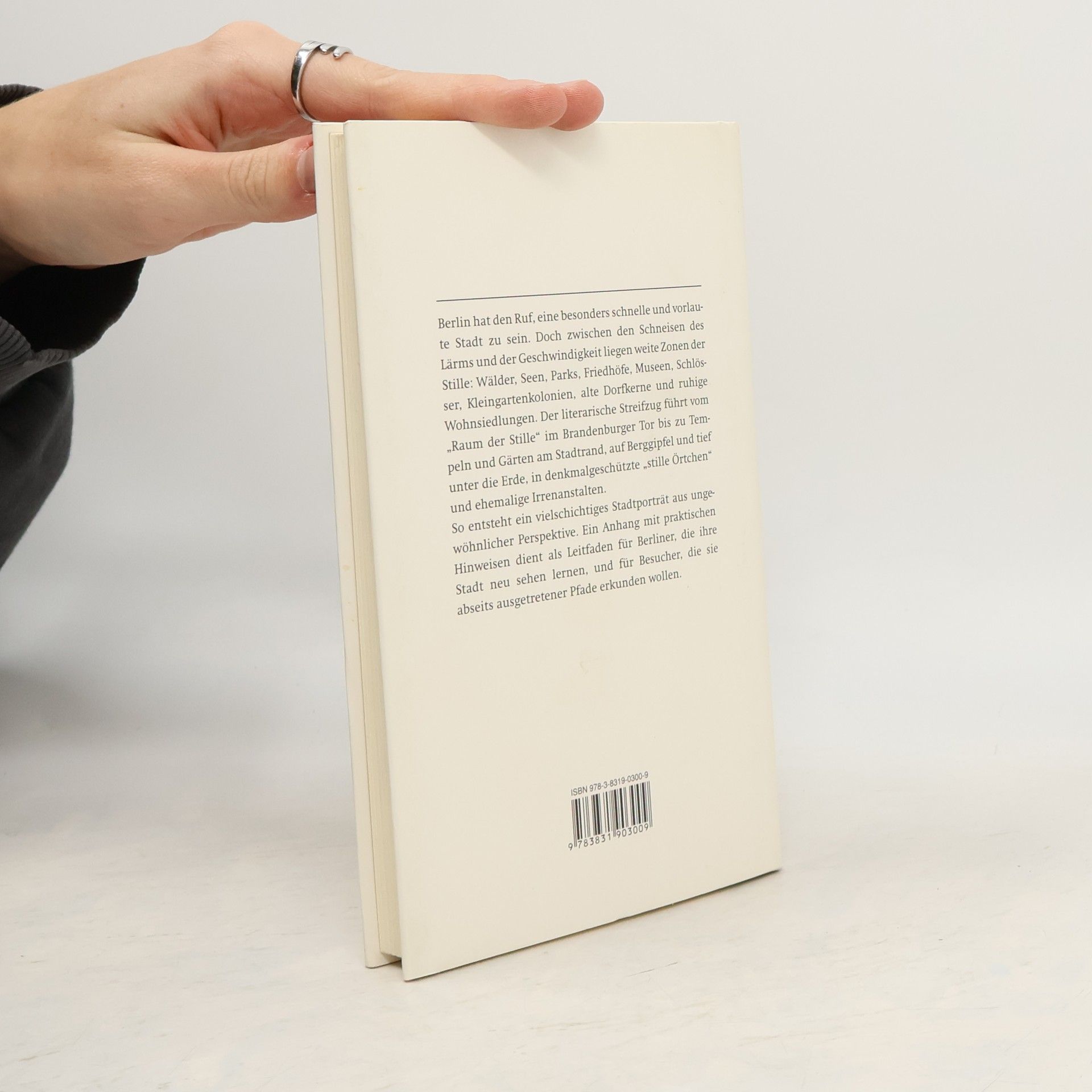Berlin hat den Ruf, eine besonders schnelle und vorlaute Stadt zu sein. Doch zwischen den Schneisen des Lärms und der Geschwindigkeit liegen weite Zonen der Stille: Wälder, Seen, Parks, Friedhöfe, Museen, Schlösser, Kleingartenkolonien, alte Dorfkerne und ruhige Wohnsiedlungen. Der literarische Streifzug führt vom Raum der Stille im Brandenburger Tor bis zu Tempeln und Gärten am Stadtrand, auf Berggipfel und tief unter die Erde, in denkmalgeschützte stille Örtchen und ehemalige Irrenanstalten. So entsteht ein vielschichtiges Stadtporträt aus ungewöhnlicher Perspektive. Ein Anhang mit praktischen Hinweisen dient als Leitfaden für Berliner, die ihre Stadt neu sehen lernen, und für Besucher, die sie abseits ausgetretener Pfade erkunden wollen.