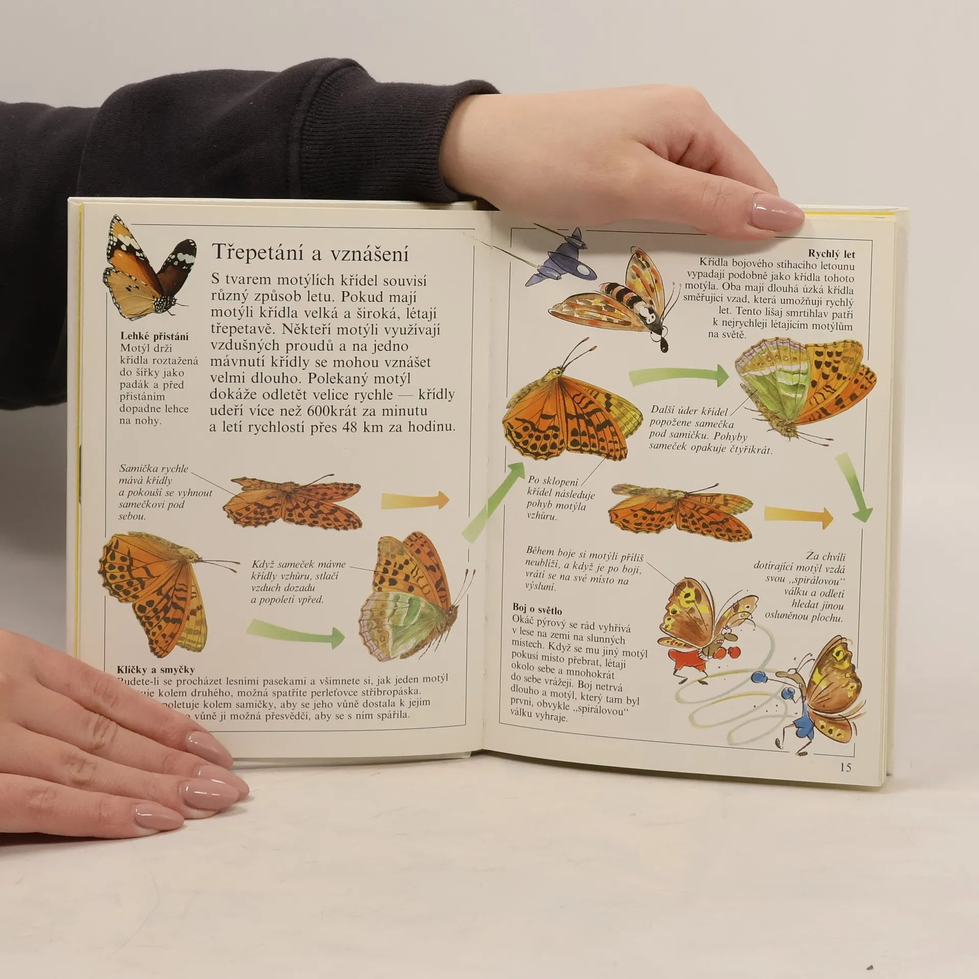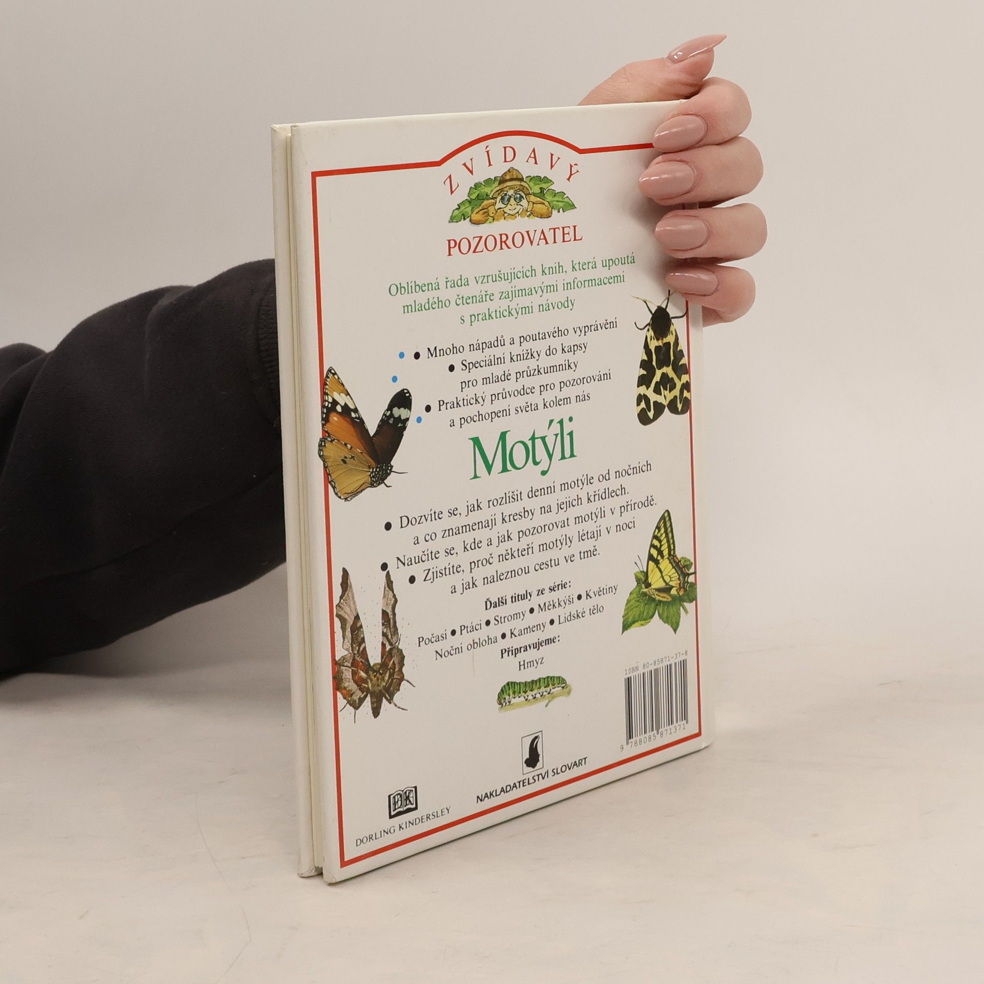 Knížečka o tom, jak pozorovat motýly a porozumět jejich vývoji a jejich světu. Zajímavosti ze života motýlů jsou podány na dvoustránkách, které si všímají jejich vývojových stádií, potravy, mimikry a životních prostředí, jimž se některé druhy dokáží přizpůsobit. Kniha je určena dětem od středního školního věku.