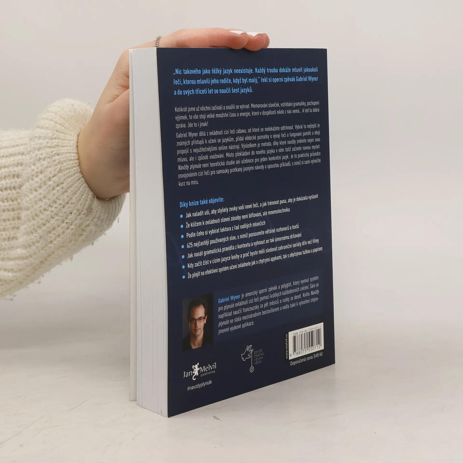 Vzdali jste učení se cizích jazyků? Nemáte čas a ještě k tomu vás úmorná gramatická cvičení nudí? A když už do hlavy něco dostanete, stejně to zase brzy zapomenete? Navždy plynule vaši skepsi vyléčí! Ukáže vám, jak se cizí řeč naučit efektivně, rychle, zábavně a natrvalo. Záchrana, že? Operní pěvec a polyglot Gabriel Wyner není pouhým teoretikem – již ve třiceti letech mluvil plynně šesti jazyky, které se zvládl naučit sám. A každý z nich navíc ovládl v řádu měsíců. Bohaté zkušenosti pak přetavil do nové učební metody pro samouky, která spočívá v krátkých denních trénincích, propojuje to nejužitečnější ze známých lingvistických přístupů s poznatky o fungování mozku a nezapomíná ani na pomoc zdarma dostupných online nástrojů. Navždy plynule vás naučí, jak naladit uši na nové zvuky, jak donutit ústa ke všem novým akrobaciím a jak si kousek po kousku uložit do dlouhodobé paměti vše: od jednoduchých slovíček až po složitá gramatická pravidla. A buďte bez obav, nuda přitom rozhodně nehrozí. Naopak, zábava je klíčem k úspěchu. Takže tentokrát si hru s cizími jazyky užijete a konečně se naučíte vyhrávat! Enfin! Endlich! ?????! Finally! Finalmente! Végre! Endelig! Nareszcie! În cele din urmă! ...
