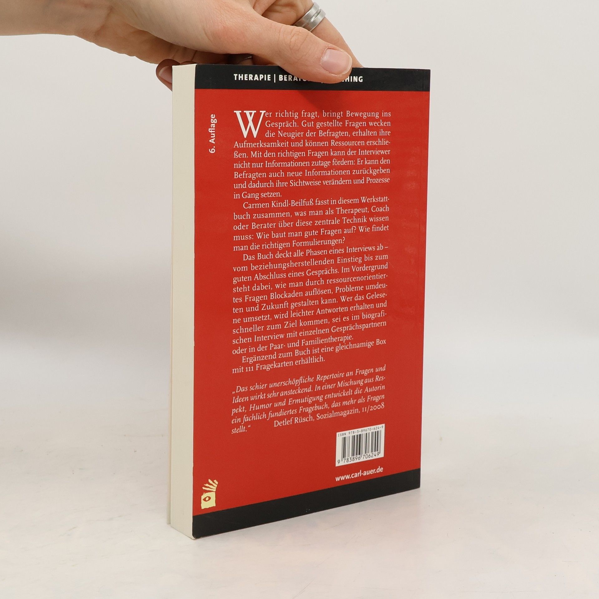 Dumme Fragen gebe es nicht, heißt es. Ungeschickte Fragen schon, und sie verbauen den Weg zur Antwort, statt ihn zu ebnen. Das gilt für oder ebenso wie im täglichen Leben.Wer richtig fragt, schafft Bewegung. Gut gestellte Fragen wecken die Neugier der Befragten, erhalten ihre Aufmerksamkeit und können Ressourcen erschließen. Mit den richtigen Fragen können nicht nur Informationen zutage fö Sie können den Befragten auch neue Informationen zurückgeben und dadurch ihre Sichtweise verändern und Prozesse in Gang setzen.Carmen Kindl-Beilfuß fasst in diesem Werkstattbuch zusammen, was man als über diese zentrale Technik wissen Wie bauen sich gute Fragen auf? Wie lassen sich die richtigen Begriffe finden?Das Buch deckt alle Phasen des Fragens ab - vom beziehungsherstellenden Einstieg bis zum "guten" Abschluss eines Gesprächs. Im Vordergrund steht dabei, wie man durch ressourcenorientiertes Fragen Blockaden auflösen, Probleme umdeuten und Zukunft gestalten kann. Wer das Gelesene umsetzt, wird leichter Antworten finden und schneller zum Ziel kommen, sei es im biografischen Interview mit einzelnen Gesprä oder in der Paar- und Familientherapie.Mit über 1000 Beispielfragen!