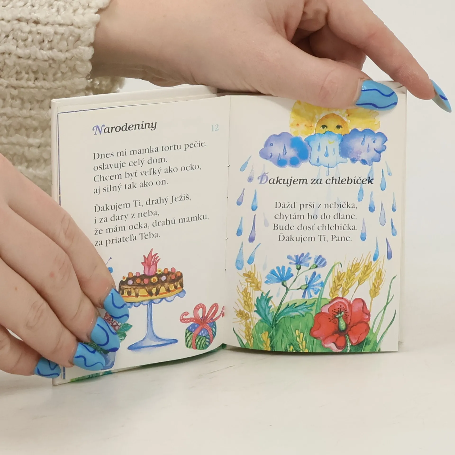 Malá knižka s básničkami pre deti: Za všetky dietky, Keď otvorím očká, K Panne Márii, Postieľka ma čaká, Mamičke, Vezmi ma za rúčky, Oteckovi, Môj deduško a babička, Narodeniny, Ďakujem za chlebíček, Kvietok Panny Márie, Ježiško náš kamarát, Veľká noc, Ku Kráľovnej mája, Na sväté prijímanie, Ježiško ťa očakáva, Ďakujeme, Duchu Svätý, Za vlasť, Lastovička zbohom volá, Modlíme sa ruženec, Na svätého Mikuláša, Štedrý deň, Pomôž mi, Ježiško, Pod jedličkou. Prvé vydanie.