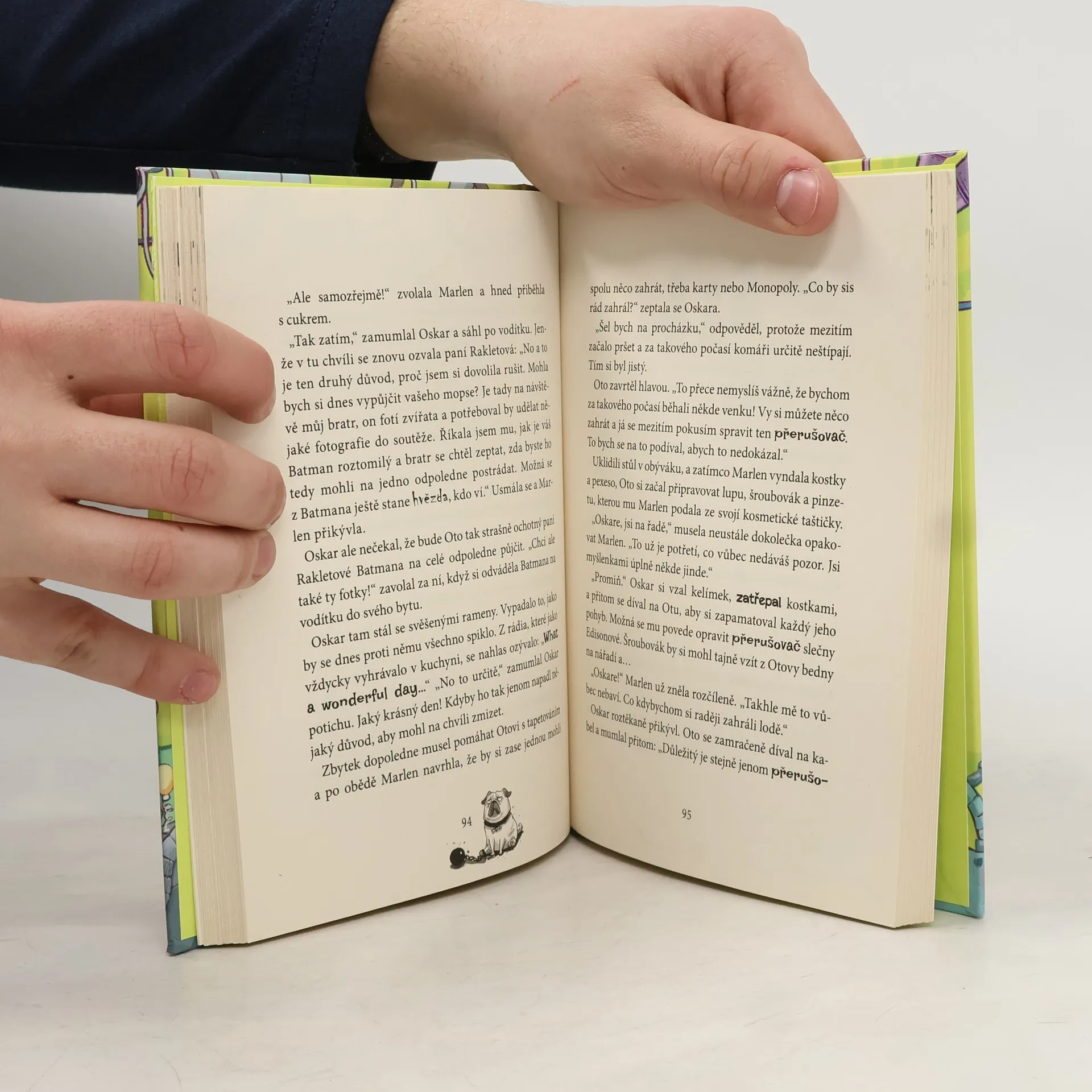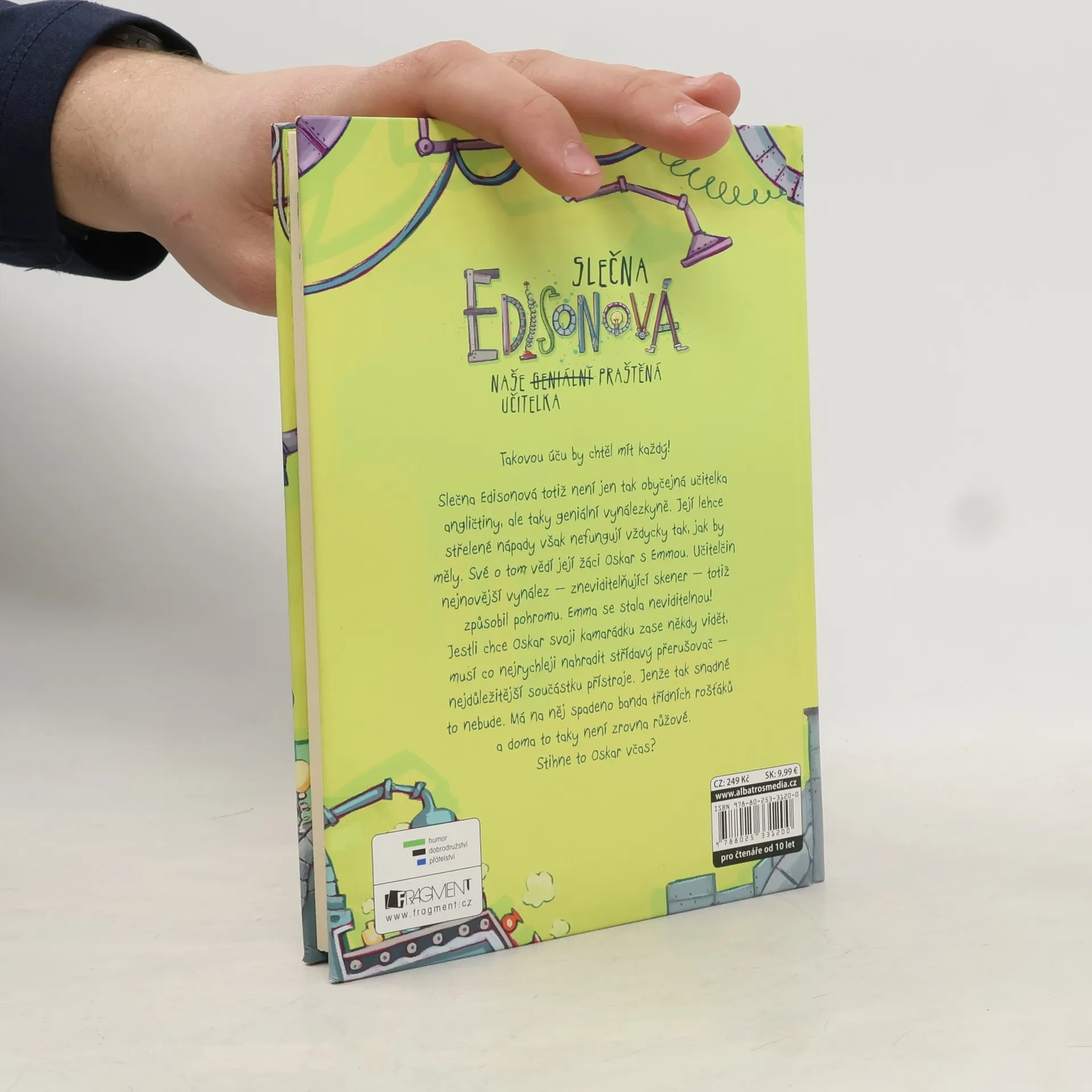 Slečna Edisonová totiž není jen tak obyčejná učitelka angličtiny, ale taky geniální vynálezkyně. Její lehce střelené nápady však vždycky nefungují tak, jak by měly. Své o tom vědí její žáci Oskar s Emou. Učitelčin nejnovější vynález – zviditelňující skener – totiž způsobil pohromu. Ema se stala neviditelnou! Jestli chce Oskar svoji kamarádku zase někdy vidět, musí co nejrychleji nahradit střídavý přerušovač – nejdůležitější součástku přístroje. Jenže tak snadné to nebude. Má na něj spadeno banda třídních rošťáků a doma to taky není zrovna růžové. Stihne to Oskar včas?