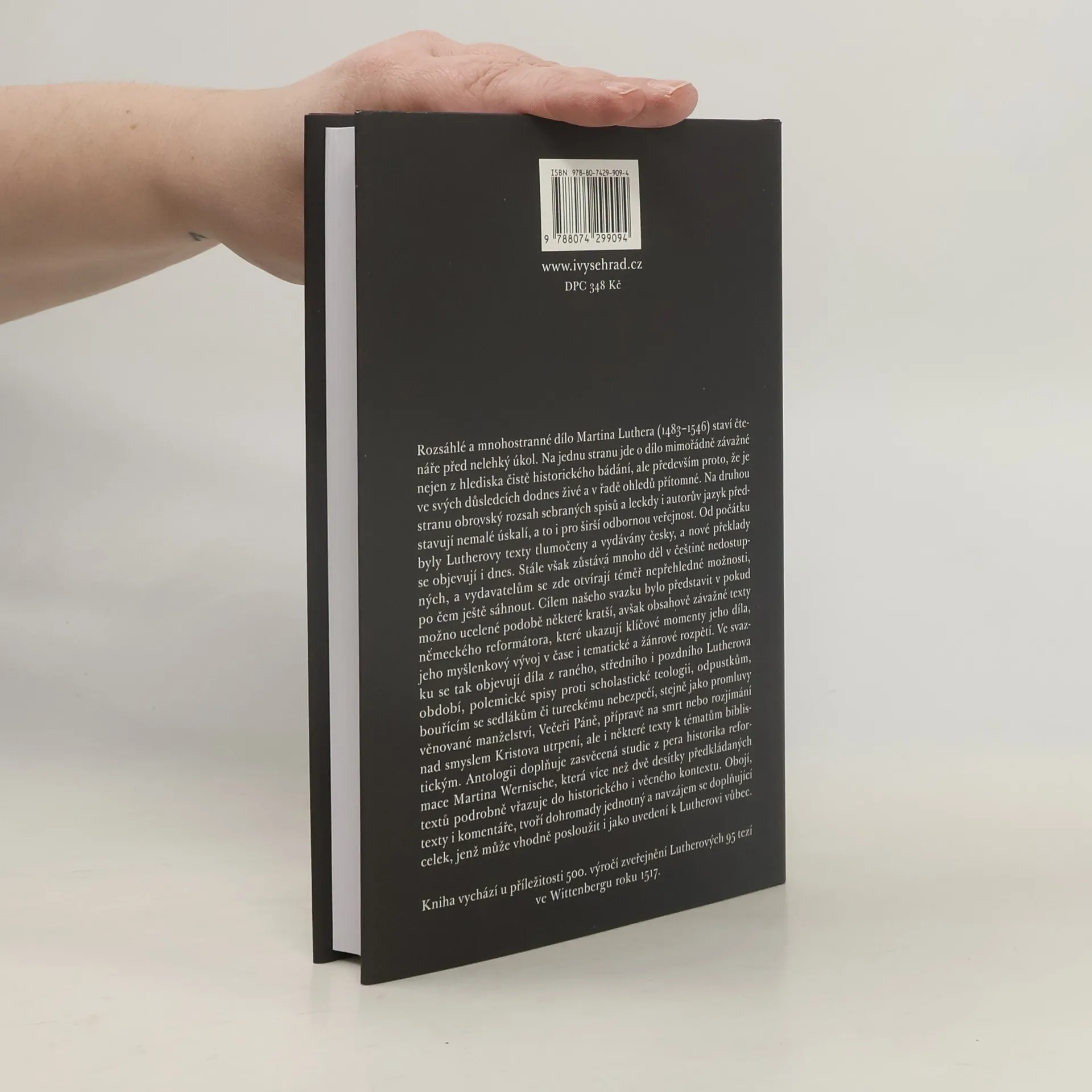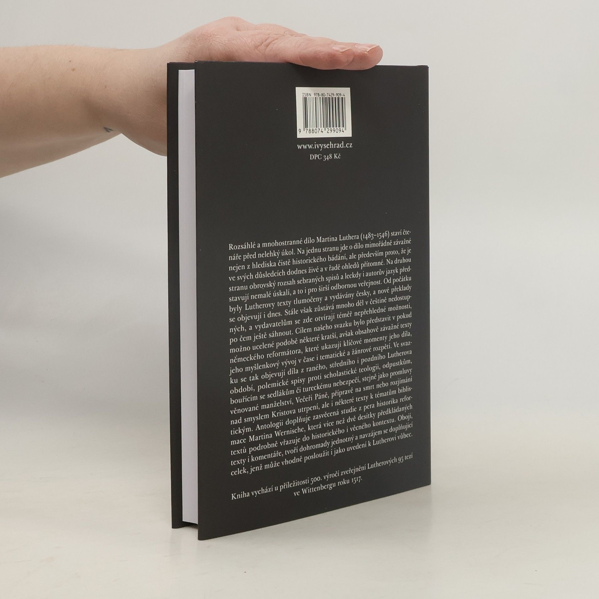 Kniha vychází u příležitosti 500. výročí vzniku německé reformace. Svazek představuje kratší, avšak obsahově závažné texty německého reformátora. Cílem výboru je ukázat Lutherovo myšlení v jeho vývoji v čase i v jeho tematické rozmanitosti. Ve svazku se tak objevují texty z raného, středního i pozdního autorova období, polemické spisy proti scholastice, odpustkům, bouřícím se sedlákům či Turkům, stejně jako pojednání věnované manželství, Večeři Páně, přípravě na smrt, rozjímání nad smyslem Kristova utrpení a další, jakož i některé texty k tématům biblistickým. Výbor doplňuje úvodní studie z pera historika reformace Martina Wernische.