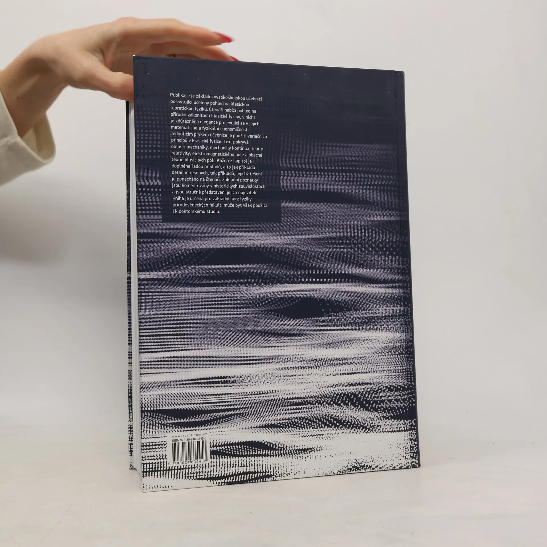 Publikace je základní vysokoškolskou učebnicí poskytující ucelený pohled na klasickou teoretickou fyziku. Čtenáři nabízí pohled na přírodní zákonitosti klasické fyziky, ve kterých je zdůrazněna jejich elegance projevující se v jejich matematické a fyzikální ekonomičnosti. Jednotícím prvkem učebnice je použití variačních principů v klasické fyzice. Text pokrývá oblasti mechaniky, mechaniky kontinua, teorie relativity, elektromagnetického pole a obecné teorie klasických polí. Každá kapitola je doplněna řadou detailně řešených příkladů a také příkladů, jejichž řešení je na čtenáři. Základní poznatky jsou komentovány v historických souvislostech a jejich objevitelé jsou stručně představeni. Kniha je určena pro základní kurz fyziky přírodovědeckých fakult, může však být použita i pro doktorské studium.