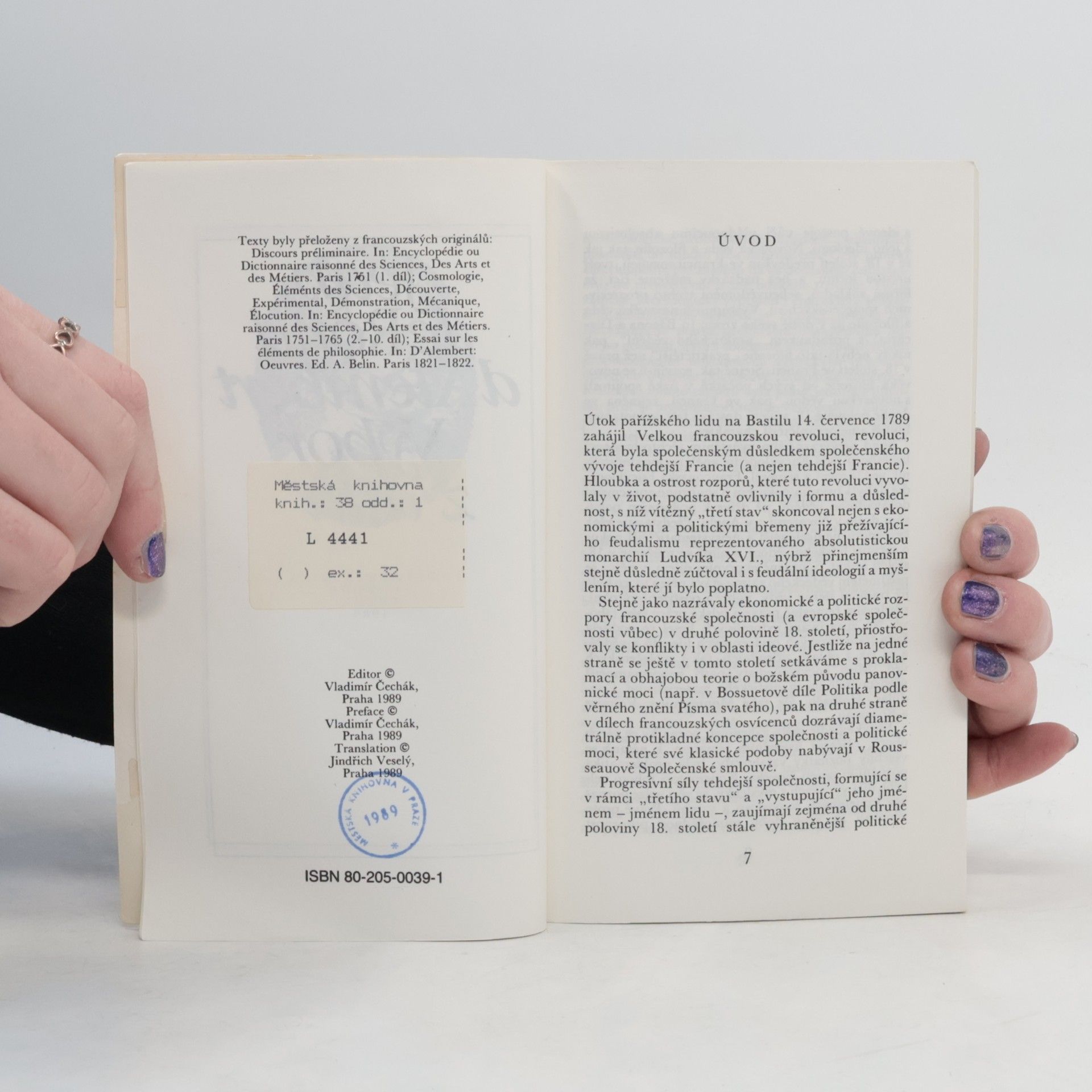V tomto svazku předkládáme čtenáři d'Alembertovu Předmluvu k Encyklopedii, výběr z hesel zpracovaných pro Encyklopedii a výběr z jeho Eseje o základech filosofie.