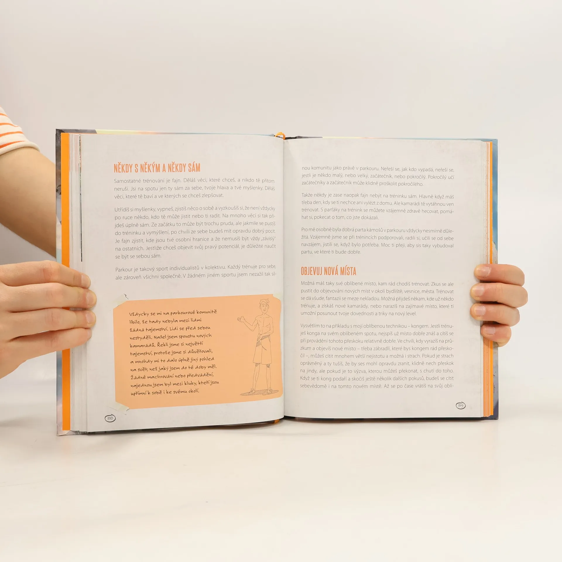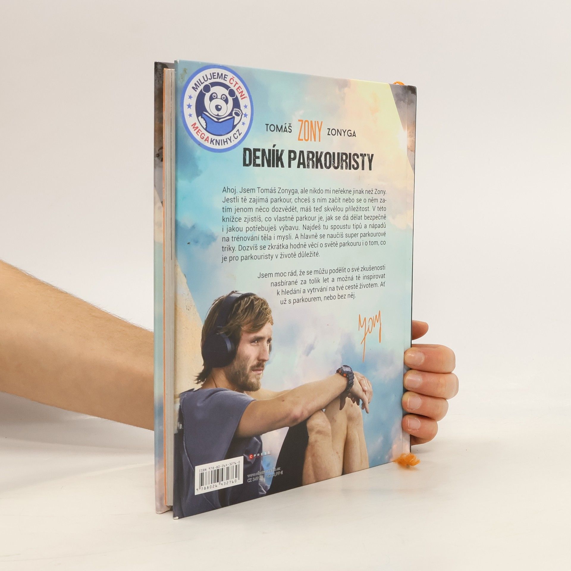 Skákej, trénuj, žij naplno a plň si své sny Ahoj. Jsem Tomáš Zonyga, ale nikdo mi neřekne jinak než Zony. Jestli tě zajímá parkour, chceš s ním začít nebo se o něm zatím jenom něco dozvědět, máš teď skvělou příležitost. V téhle knížce zjistíš, co vlastně parkour je, jak se dá dělat bezpečně i jakou potřebuješ výbavu. Najdeš tu spoustu tipů a nápadů na trénování těla i mysli. Dozvíš se taky hodně věcí o světě parkouru. Jsem rád, že se můžu podělit o své zkušenosti nasbírané za tolik let a možná tě inspirovat k hledání a vytrvání na tvé cestě životem.