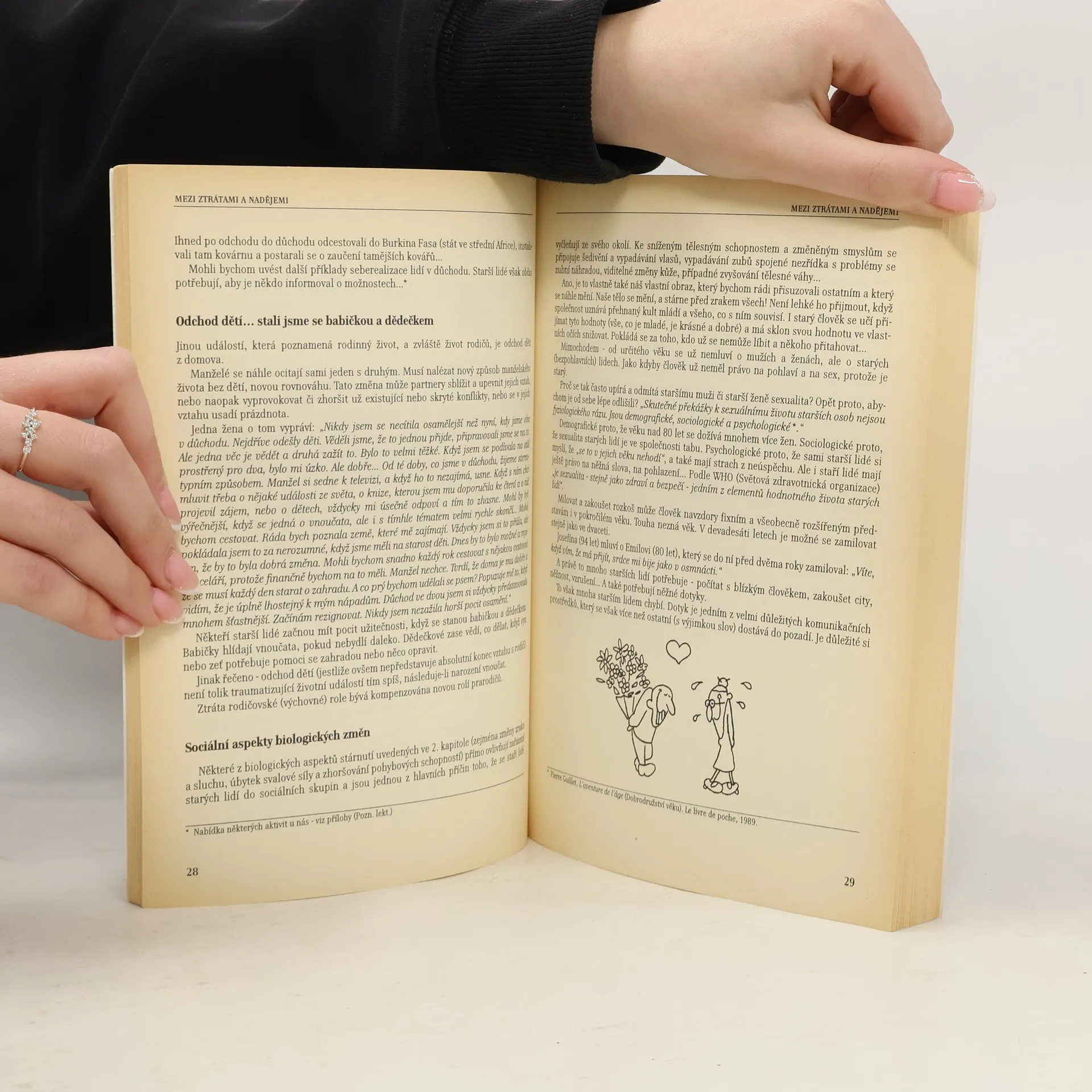 Text je koncipován do krátkých kapitol a je doprovázen mnoha příběhy o starých lidech. Základní myšlenkou je pomoci lidem v přípravě na stáří, v překonávání jeho těžkostí a na druhé straně naučit mladé lidi pomáhat starší generaci. Z velké části jde o zkušenosti z různých forem domovů důchodců ve Francii, kde jsou někdy uplatňovány často jiné, v našem prostředí méně známé formy péče o staré lidi. Text rozhodně vede k zamyšlení - nad lidmi staršími než jsme my i nad naším vlastním dříve či později přicházejícím stářím.