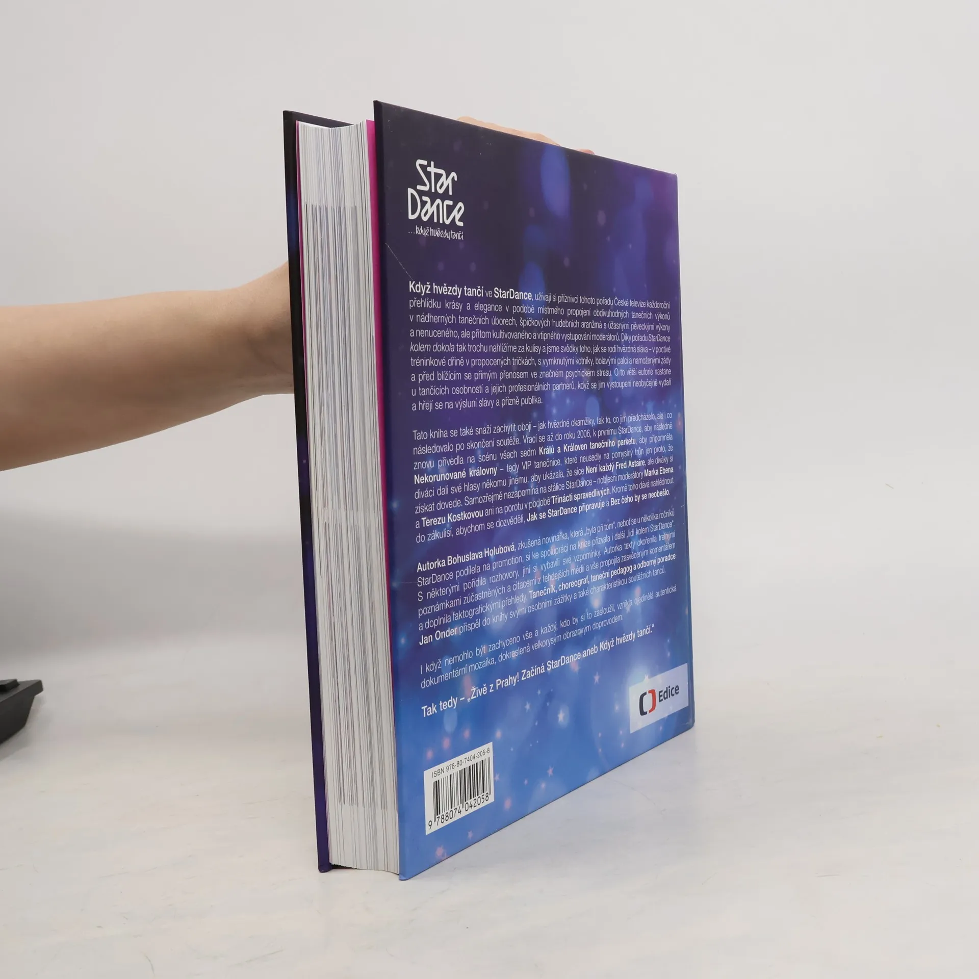 Ojedinělá dokumentární mozaika rozhovorů, autentických vzpomínek a dobových výroků je doplněna bohatým obrazovým materiálem. Když hvězdy tančí ve StarDance, diváci si užívají přehlídku krásy a elegance, která spojuje úchvatné taneční výkony, nádherné kostýmy, špičkovou hudbu a vtipné moderování. Od podzimu do Vánoc se vytváří podmanivá atmosféra, která přenáší hvězdné okamžiky do domácností, kde rodiny fandí svým favoritům. Pořad odhaluje zákulisí a ukazuje, jak se rodí hvězdná sláva prostřednictvím náročného tréninku, bolesti a psychického stresu. Euforie tančících osobností a jejich partnerů, když se vystoupení vydaří, je nezapomenutelná. Kniha zachycuje jak hvězdné okamžiky, tak to, co jim předcházelo a následovalo, a vrací se k prvnímu ročníku v roce 2006. Připomíná Krále a Královny tanečního parketu a VIP tanečnice, které nezískaly vítězství, ale přesto si získaly diváky. Nechybí ani stálice pořadu, moderátoři a porota. Autorka Bohuslava Holubová, zkušená novinářka, spolupracovala s lidmi kolem StarDance, přičemž zahrnula rozhovory a vzpomínky. Texty doplnila citacemi a svým komentářem, zatímco Jan Onder přispěl osobními zážitky a charakteristikou soutěžních tanců.